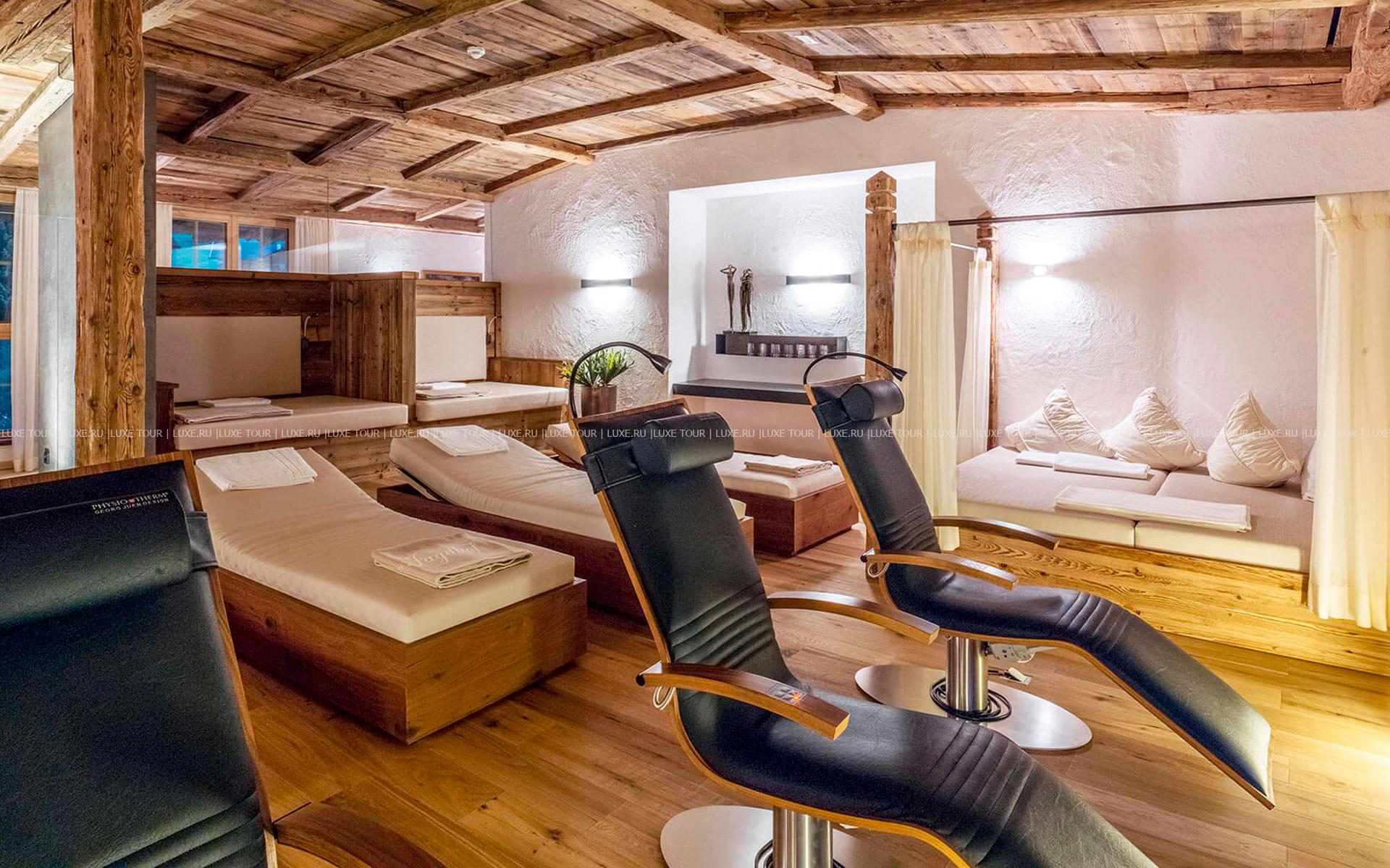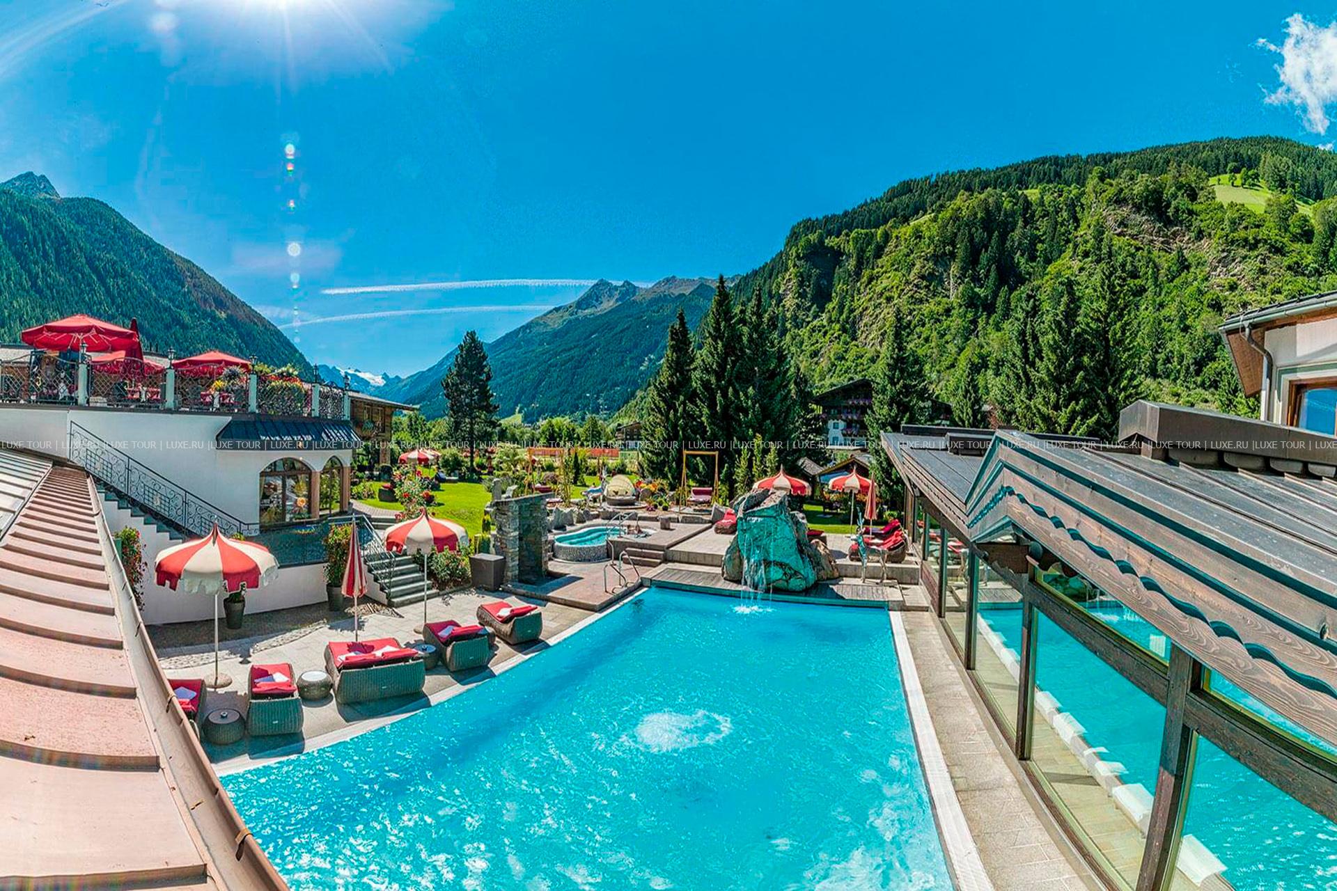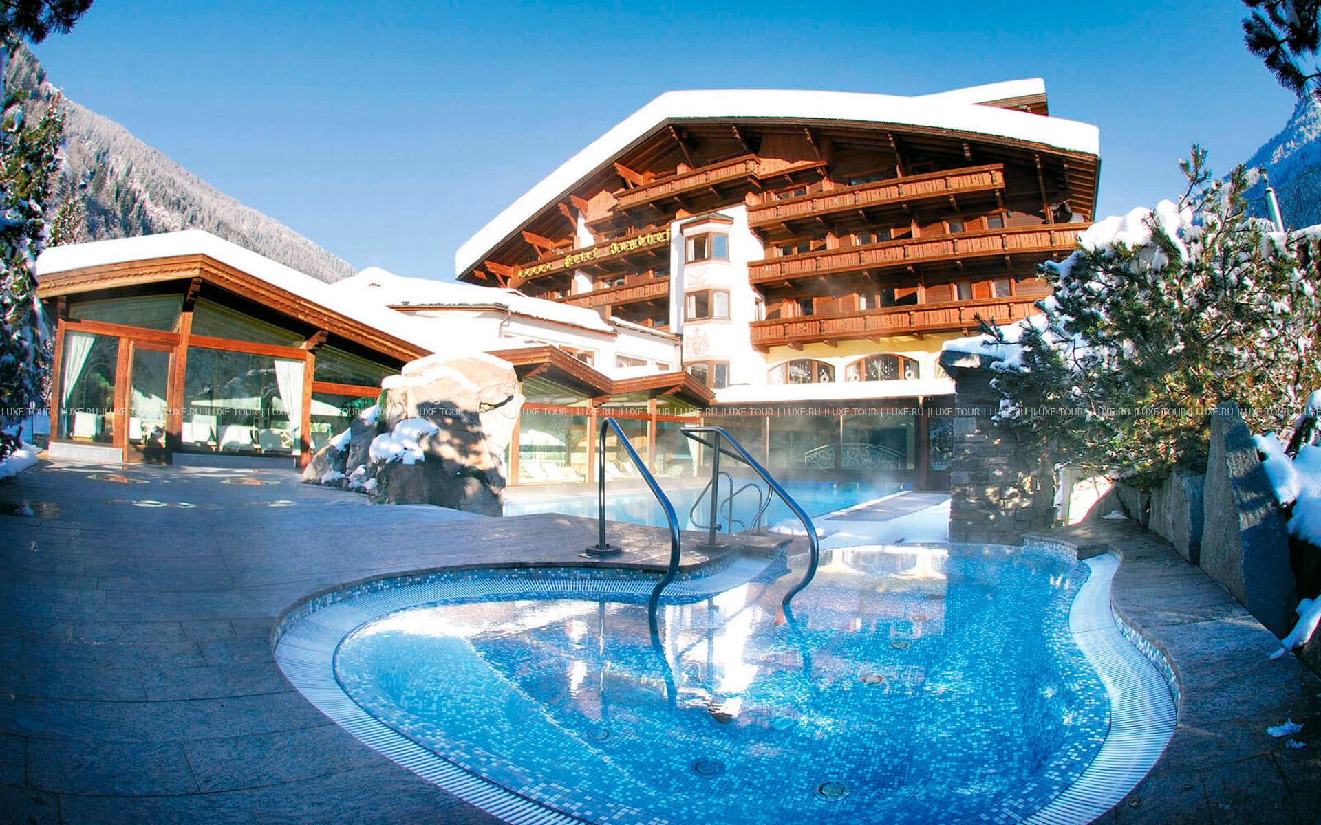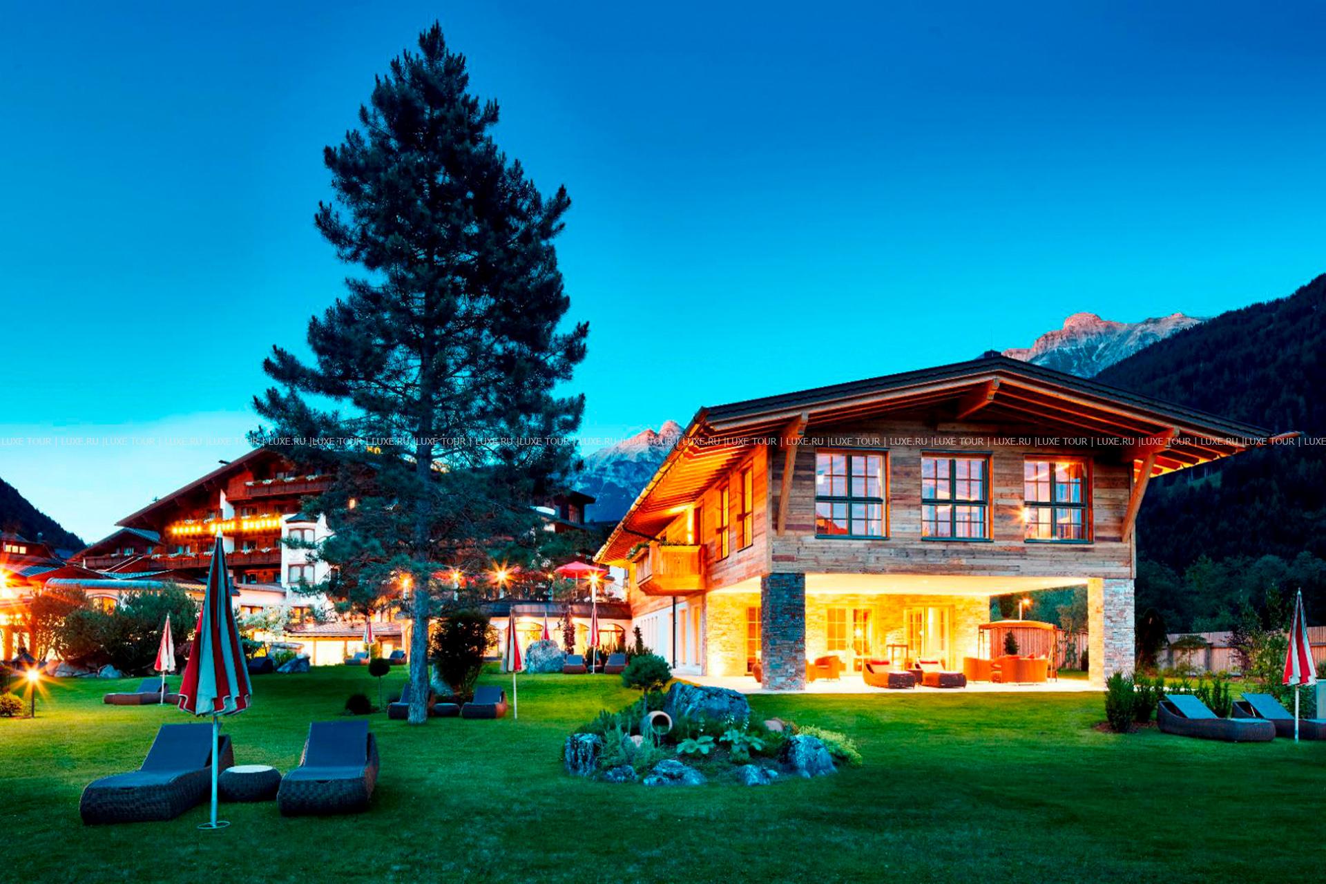 В окружении величественных горных склонов с многочисленными лыжными трассами, пышных лесов и солнечных лугов тирольской долины Штубай, среди 4000 м2 благоухающего ухоженного сада расположился фешенебельный Spa Hotel Jagdhof, выполненный в традиционном альпийском стиле, владельцы которого — семья Пфуртшеллер (Pfurtscheller) уже 30 лет бережно хранят традиции уютного комфорта и радушного гостеприимства. В комфортабельных номерах, представленных в большом разнообразии, — элегантные интерьеры в теплых тонах, оформленные в тирольском стиле, с отделкой и мебелью из натурального дерева, мягким освещением, украшенные изысканными элементами декора и предметами антиквариата, с уютных балконов открывается великолепный вид на горные ландшафты. Отель располагает уникальным Оздоровительным/СПА комплексом World of Vitality, включающим открытую зону с ухоженным садом площадью 4000 м2, зону бассейнов площадью 220 м2и СПА комплекс, занимающий 2 этажа и 2000 м2