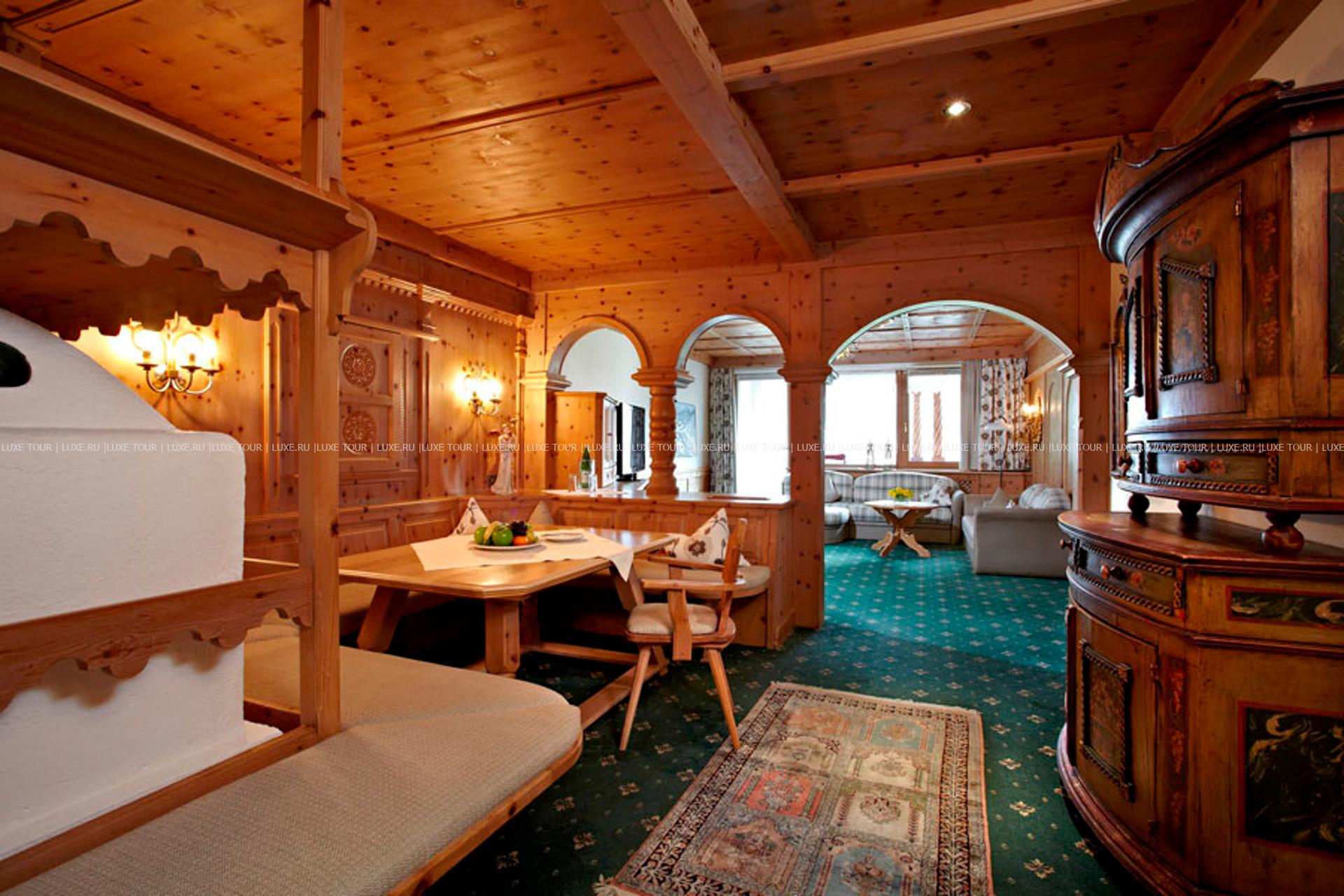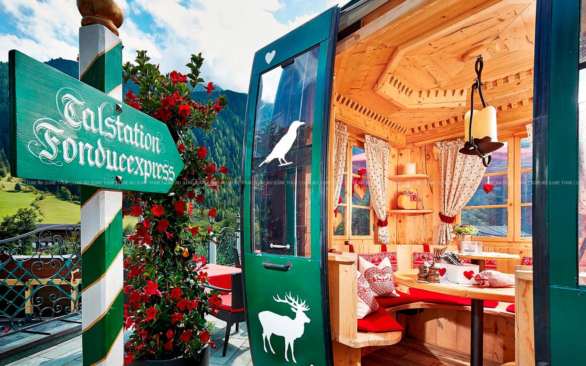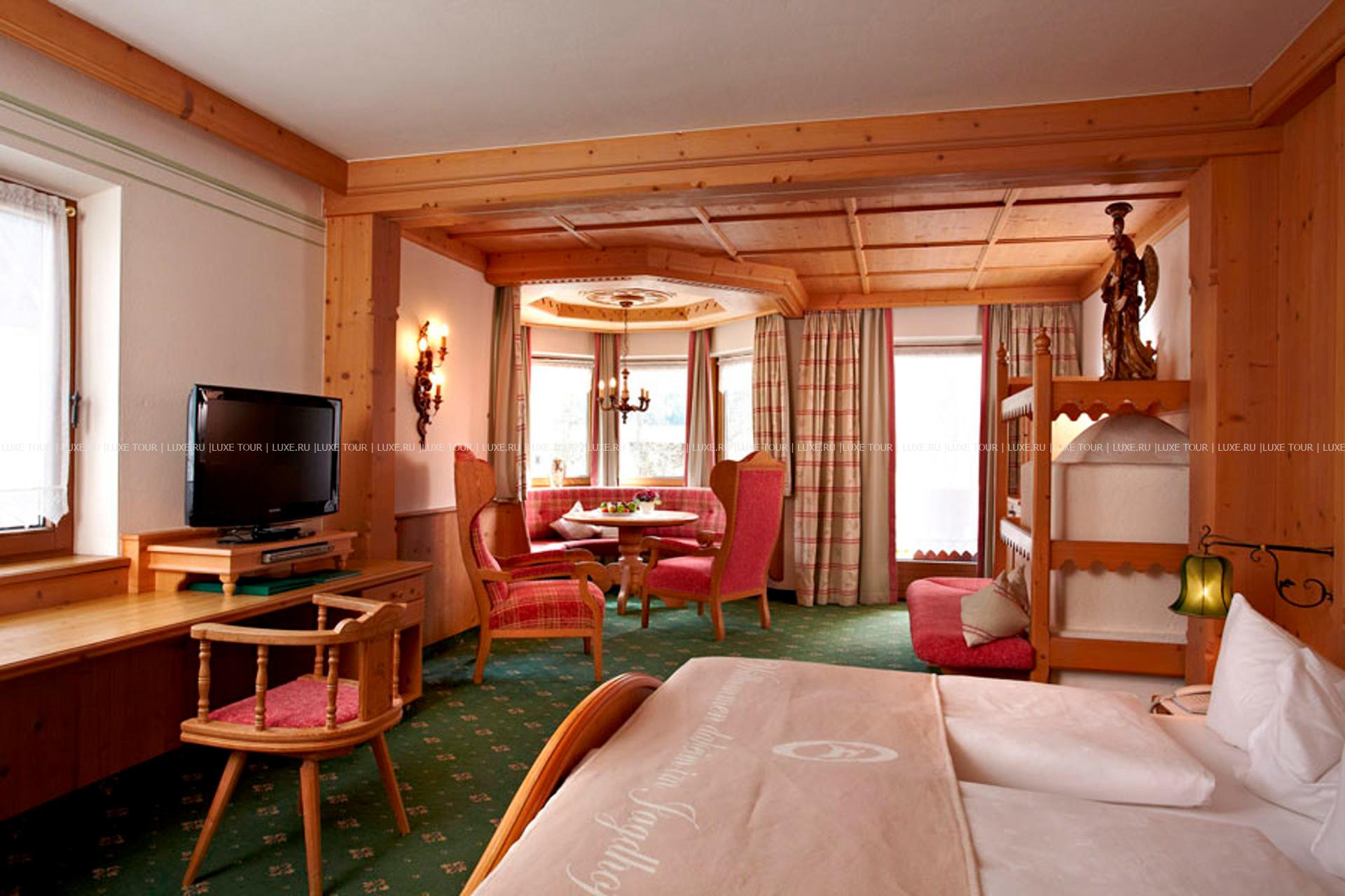 В окружении величественных горных склонов с многочисленными лыжными трассами, пышных лесов и солнечных лугов тирольской долины Штубай, среди 4000 м2 благоухающего ухоженного сада расположился фешенебельный Spa Hotel Jagdhof, выполненный в традиционном альпийском стиле, владельцы которого — семья Пфуртшеллер (Pfurtscheller) уже 30 лет бережно хранят традиции уютного комфорта и радушного гостеприимства. В комфортабельных номерах, представленных в большом разнообразии, — элегантные интерьеры в теплых тонах, оформленные в тирольском стиле, с отделкой и мебелью из натурального дерева, мягким освещением, украшенные изысканными элементами декора и предметами антиквариата, с уютных балконов открывается великолепный вид на горные ландшафты. Отель располагает уникальным Оздоровительным/СПА комплексом World of Vitality, включающим открытую зону с ухоженным садом площадью 4000 м2, зону бассейнов площадью 220 м2и СПА комплекс, занимающий 2 этажа и 2000 м2