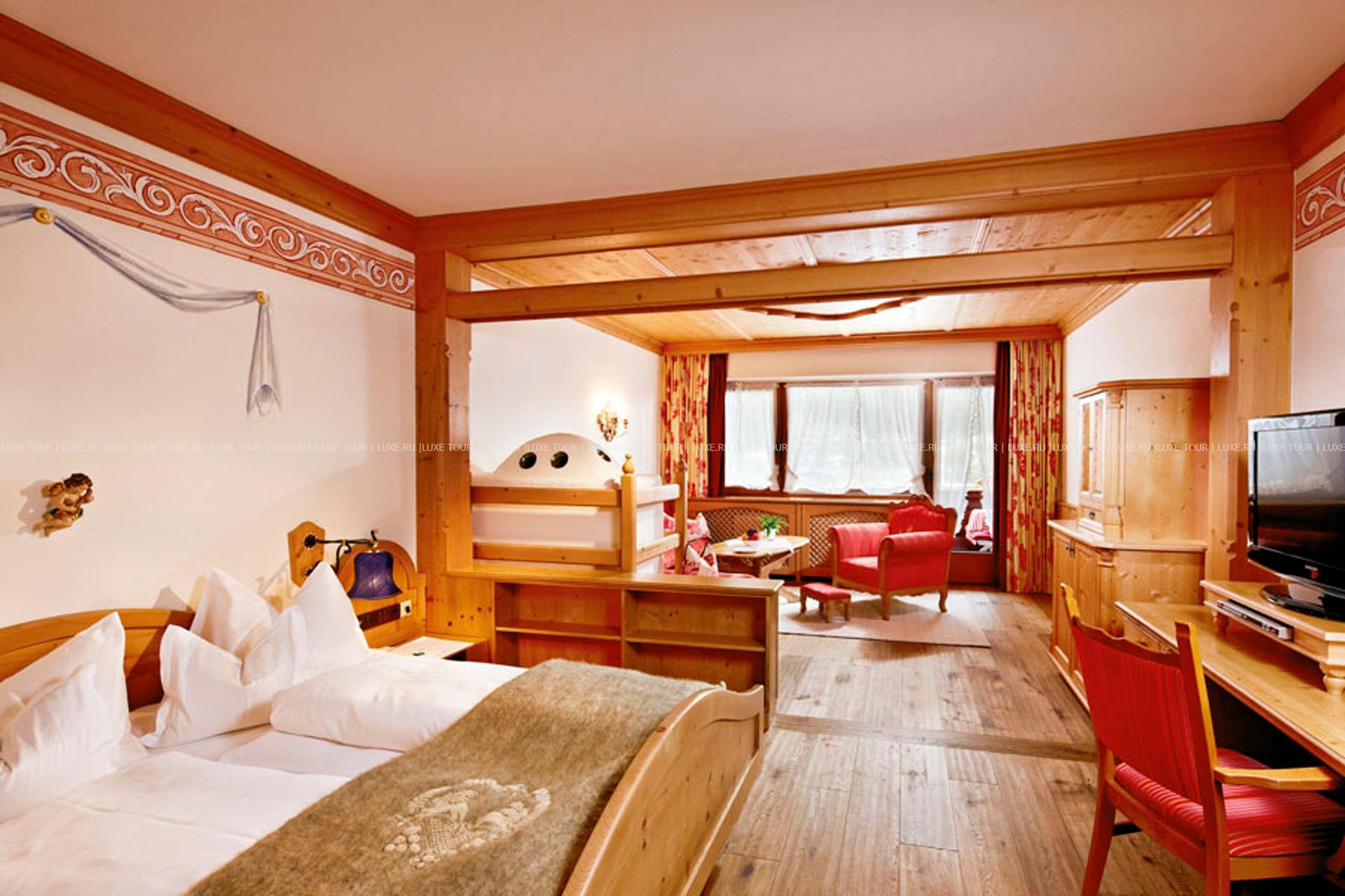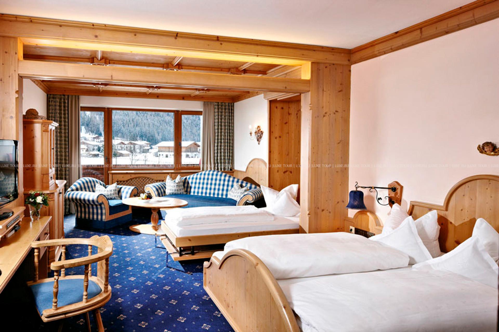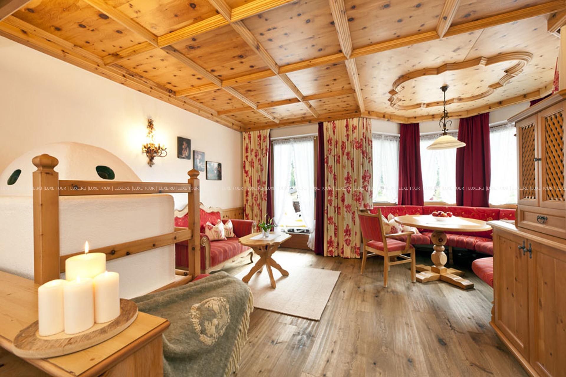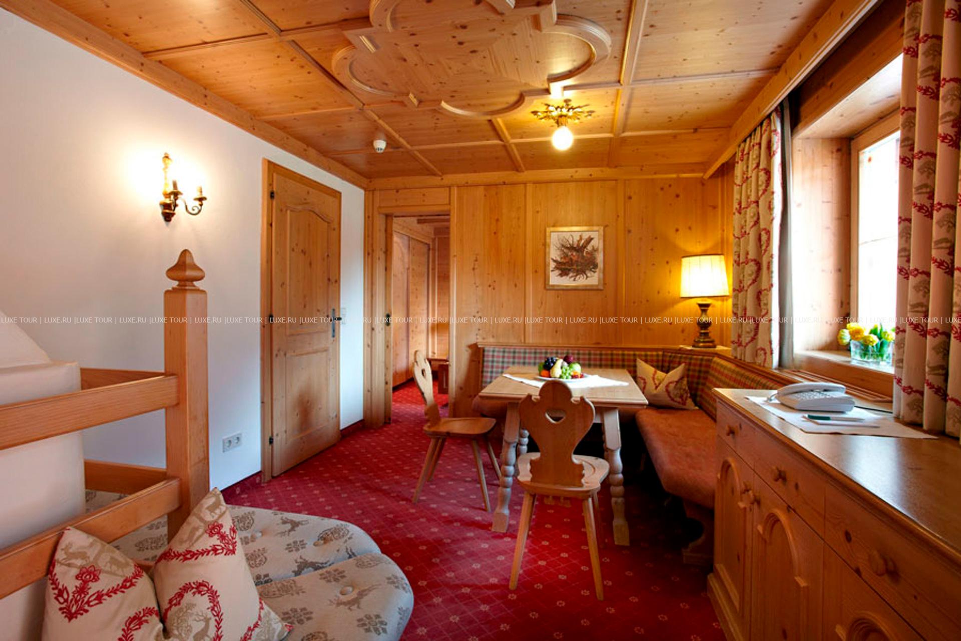 В окружении величественных горных склонов с многочисленными лыжными трассами, пышных лесов и солнечных лугов тирольской долины Штубай, среди 4000 м2 благоухающего ухоженного сада расположился фешенебельный Spa Hotel Jagdhof, выполненный в традиционном альпийском стиле, владельцы которого — семья Пфуртшеллер (Pfurtscheller) уже 30 лет бережно хранят традиции уютного комфорта и радушного гостеприимства. В комфортабельных номерах, представленных в большом разнообразии, — элегантные интерьеры в теплых тонах, оформленные в тирольском стиле, с отделкой и мебелью из натурального дерева, мягким освещением, украшенные изысканными элементами декора и предметами антиквариата, с уютных балконов открывается великолепный вид на горные ландшафты. Отель располагает уникальным Оздоровительным/СПА комплексом World of Vitality, включающим открытую зону с ухоженным садом площадью 4000 м2, зону бассейнов площадью 220 м2и СПА комплекс, занимающий 2 этажа и 2000 м2