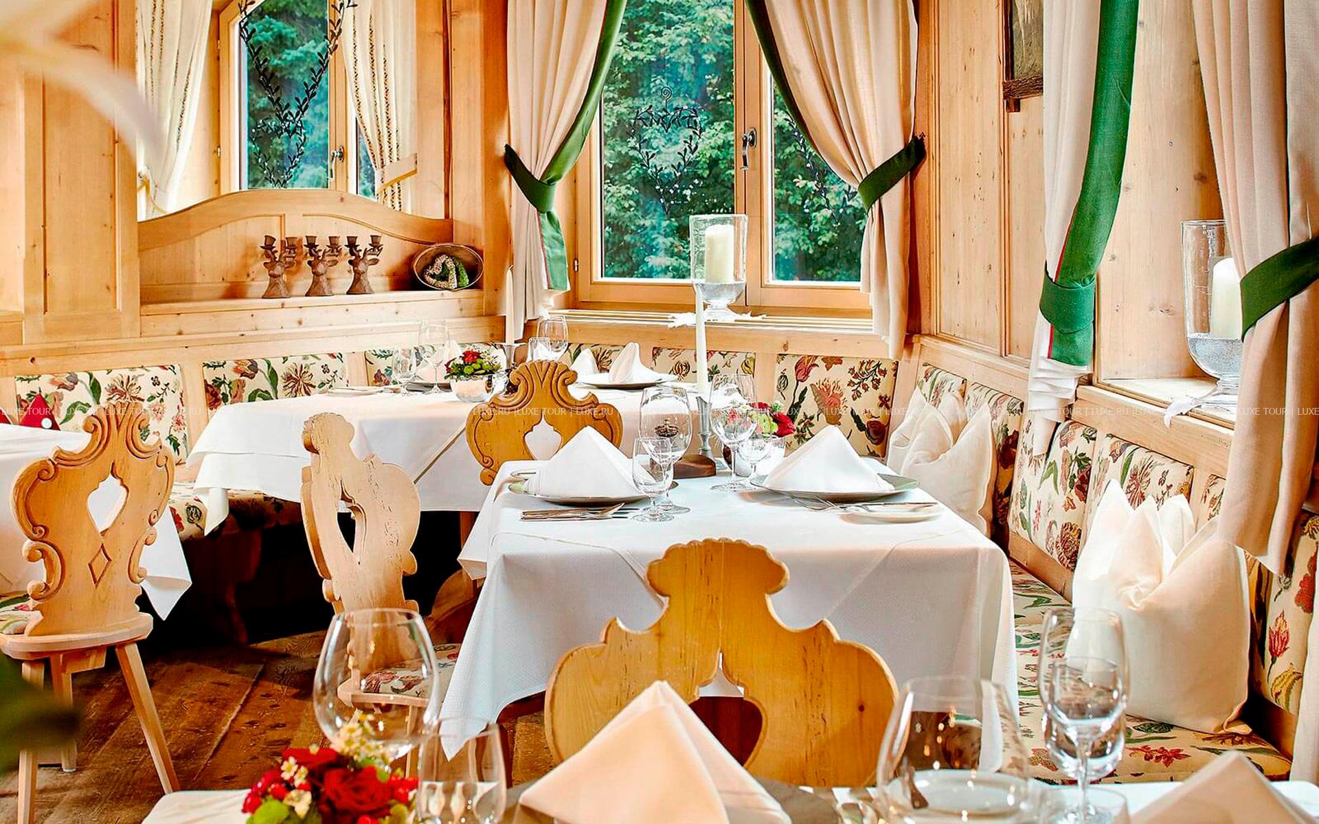 Гордость отеля — винный погреб, построенный из кирпича и гранита имперской эпохи и выложенный уникальной керамической плиткой с ручной росписью, из коллекции Ротшильдов; здесь хранится 22000 бутылок лучших вин от 300 производителей со всего мира, и каждую неделю устраиваются дегустации. Уютная гостиная у массивного открытого камина — приятное место для отдыха и встреч, где предложен большой выбор коктейлей и звучит живая музыка. В теплое время года послеобеденный чай, кофе и аппетитная выпечка подаются на открытой террасе в саду, откуда открывается потрясающий вид на альпийские ландшафты. Разнообразие услуг, безупречный сервис, изысканность стиля и гостеприимный тирольский уют Spa Hotel Jagdhof, гармонично сочетающиеся с изумительной окружающей природой, способны удовлетворить самый взыскательный вкус.