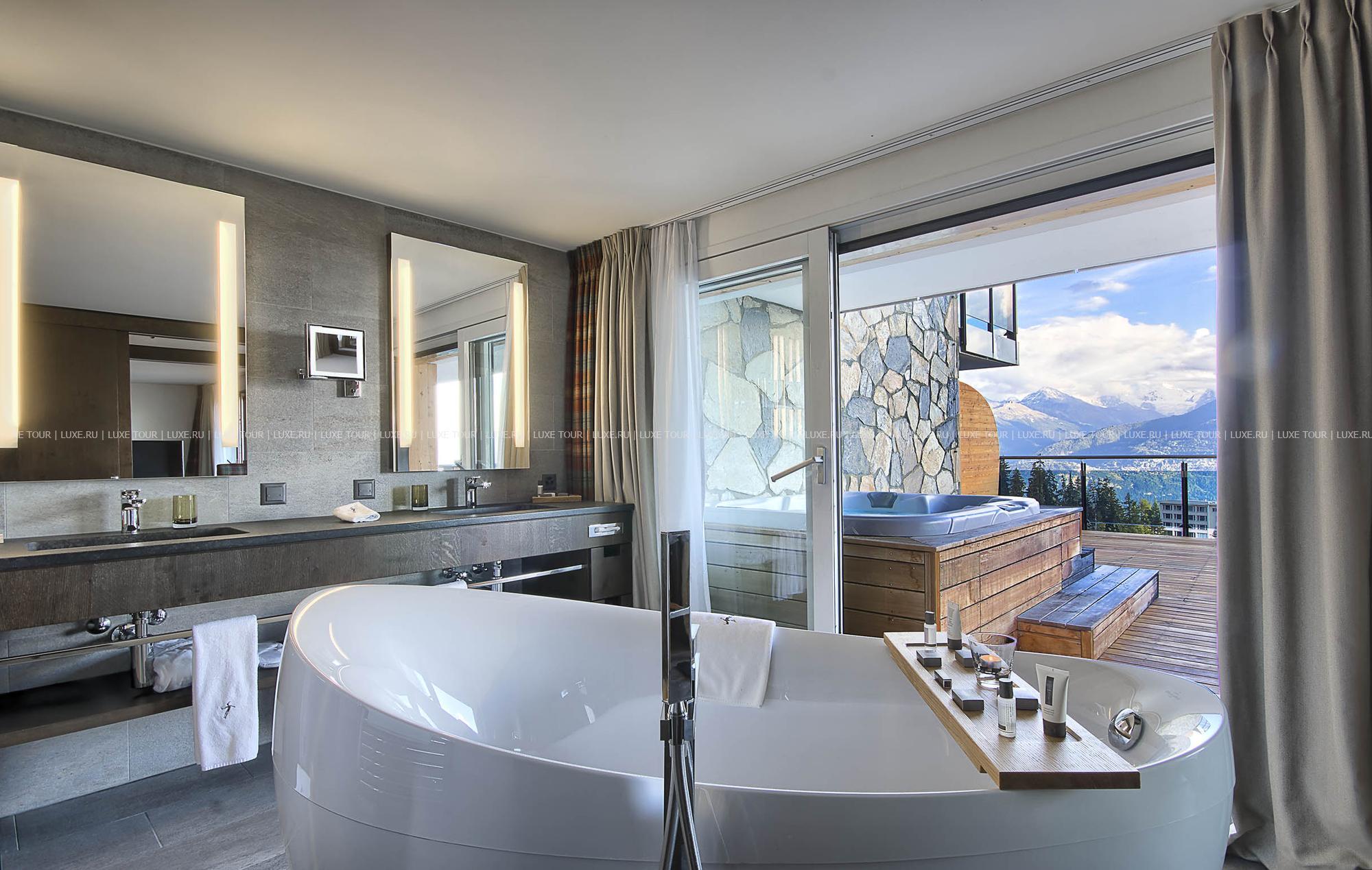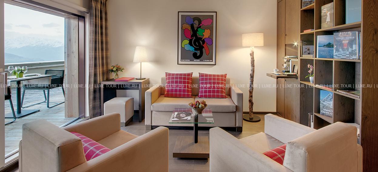 Crans Ambassador Hotel & Spa Швейцария — полностью обновленный фешенебельный отель, окруженный величественными 4000-метровыми вершинами и красивейшими горными склонами, поросшими густыми лесами. Отель представляет гармоничное сочетание ультрасовременного комфорта, дизайна и альпийского гостеприимного уюта. К услугам гостей Crans Ambassador Hotel & Spa Швейцария — шикарные номера, с балконов которых можно любоваться великолепием горных пейзажей, роскошный СПА центр с бассейном, парными, фитнес-залом и разнообразием специально разработанных программ, детский клуб, изысканный гастрономический ресторан с залом и открытой террасой, уютный бар с камином, сигарная гостиная, кинозал, зал видеоигр и конференц-зал.