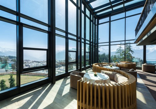 В уютном баре-гостиной приятно, сидя у камина и любуясь захватывающей панорамой Альп, выпить бокал холодного шампанского или чашечку ароматного чая с изумительной выпечкой и знаменитым шоколадом, а также послушать живую музыку.