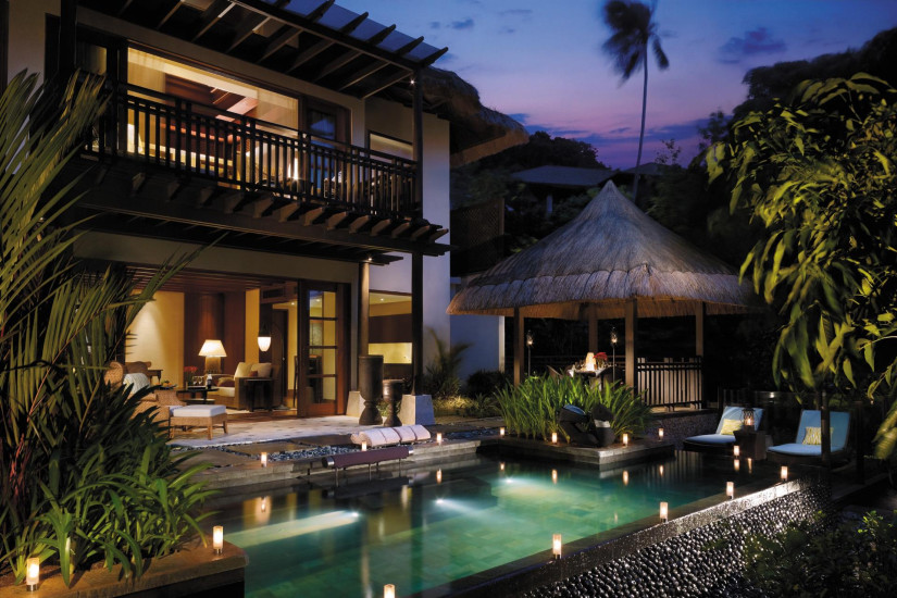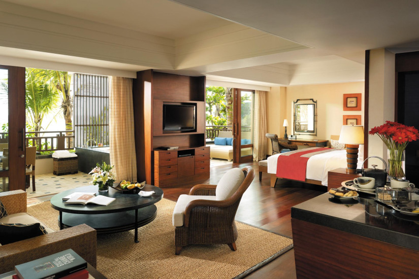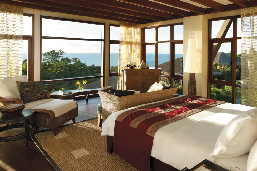 Дизайн комбинирует островной филиппинский стиль, современные предметы обстановки и натуральные отделочные материалы (местное дерево abaka). Ванные комнаты облицованы мрамором; из просторных меблированных балконов/террас открываются чудесные виды на ландшафтный сад или на море. Для гостей номеров категории Villa — VIP-регистрация/выписка, услуги личного дворецкого и шеф-повара (организация барбекю).