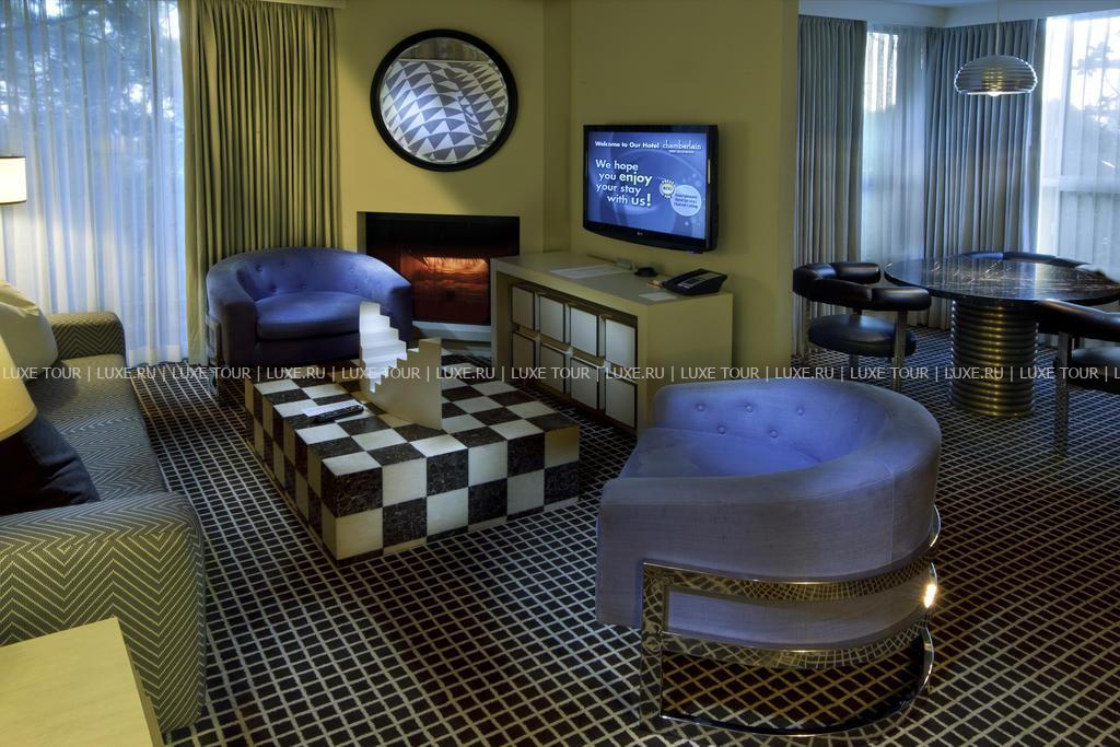 Chamberlain West Hollywood США — изысканный бутик-отель, удобно расположенный в самом сердце Западного Голливуда, в паре кварталов от Sunset Strip, бульвара Santa Monica и других достопримечательностей Лос-Анджелеса. Отель предлагает размещение в просторных комфортабельных сьютах, оформленных в оригинальном дизайнерском стиле и располагающих уютными каминами и балконами с чудесным видом на живописные окружающие ландшафты. Также к услугам гостей — изысканный ресторан-бистро, где подаются деликатесы американской и калифорнийской кухни, уютный бар, очаровательная панорамная терраса на крыше — с бассейном и павильонами для отдыха, фитнес-центр, конференц-зал и другие современные услуги.