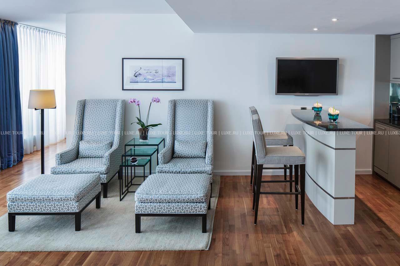 Для гостей — 3 конференц-зала (60 м2 и два – 50 м2), бизнес-услуги, аренда ноутбуков, автомобильная парковка, прокат автомобилей и велосипедов, услуги консьержа, услуги прачечной и химчистки.