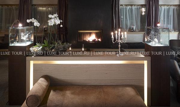 Элегантное здание DV Chalet Boutique Hotel & Spa, Мадонна ди Кампильо расположено поблизости от центра курорта и лыжных подъемников, в окружении величественных Доломитовых Альп. Этот небольшой бутик-отель сочетает альпийский уют и необычную атмосферу: натуральное дерево и дорогие ткани, стены, расписанные стихами, и дорогой текстиль, антикварные произведения искусства и элементы декора от всемирно известных дизайнеров, тонкие ароматы ванили и яблок и потрескивающий огонь в каминах. К услугам гостей шикарные дизайнерские номера, два изысканных ресторана, один из которых награжден звездой Мишлен, уютные бары, роскошный центр SPA Panta Rei и другие современные удобства.