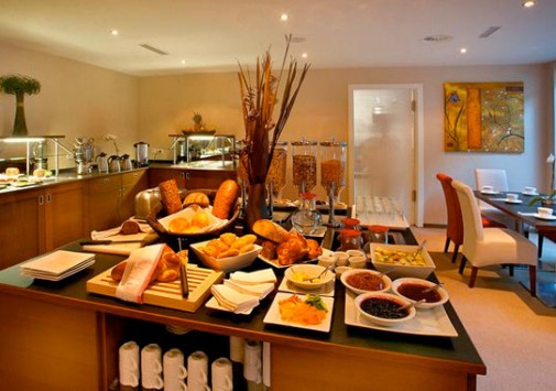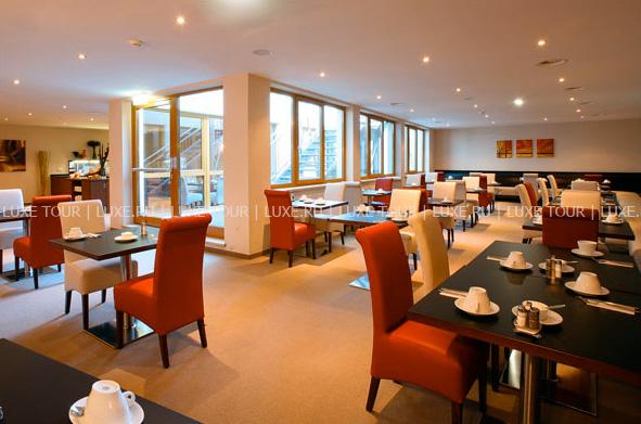 В элегантном зале предлагаются разнообразные буфеты завтраков. На ланч подаются разнообразные закуски.