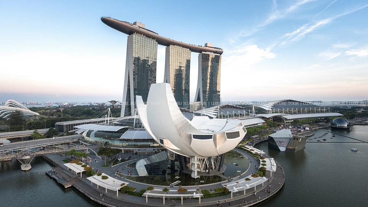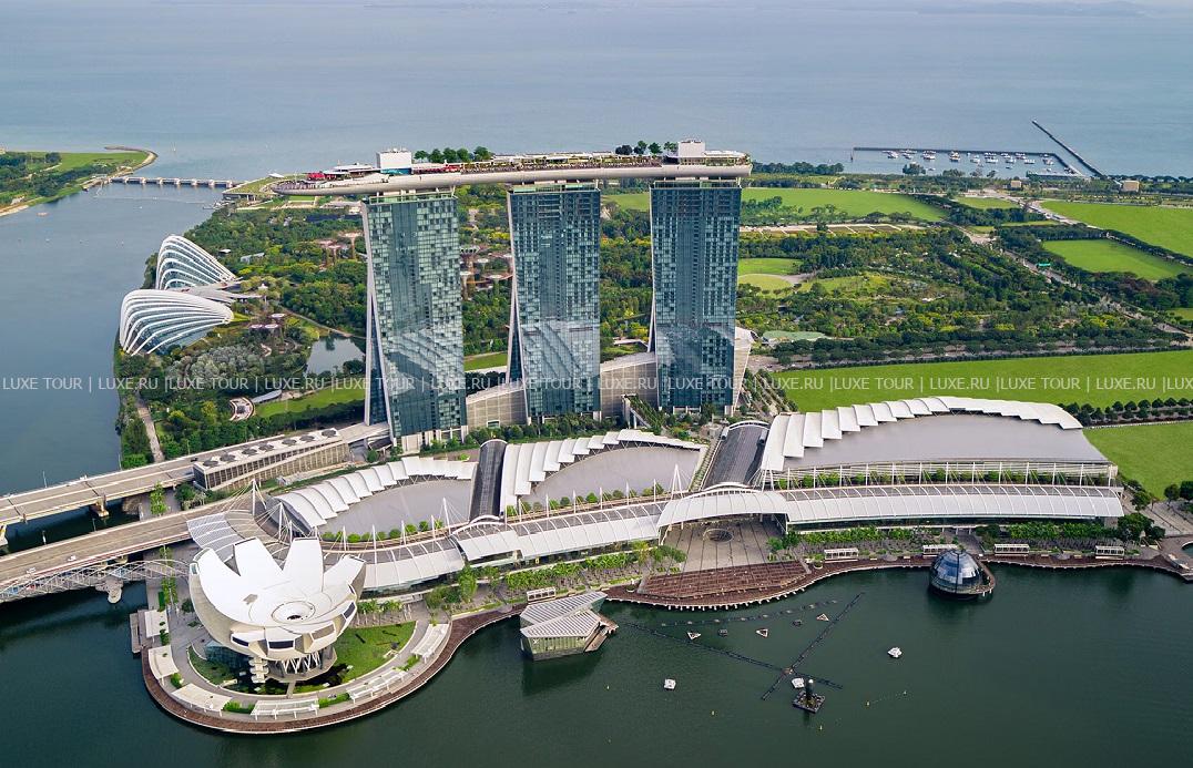 В центре Сингапура, над сверкающей морской гладью возвышается Marina Bay Sands — грандиозное сооружение из трех 55-этажных небоскребов, увенчанных гигантским океанским лайнером с фантастическим парком. Это архитектурное футуристическое чудо, спроектированное известным архитектором Моше Сафди и открытое в 2010 году, впечатляет невиданным размахом во всех отношениях. Здесь есть всё для отдыха, развлечений и бизнеса. Фешенебельный отель с роскошными номерами, из панорамных окон которых открываются красивейшие ландшафты Сингапура и зеркальной морской глади. Разнообразное множество ресторанов и баров, где, под руководством известных шеф-поваров из разных стран, готовятся изысканные блюда всех кухонь мира. Уникальный, словно сливающийся с небом огромный бассейн на высоте 200 м, прекрасный спа-центр и фитнес-центр. Всю инфраструктуру комплекса перечислить сложно, это нужно увидеть, ведь Marina Bay Sands — это настоящее чудо света, созданное в суперсовременном государстве.