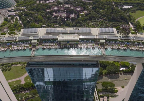 На территории Marina Bay Sands находится уникальный 150-метровый открытый бассейн.