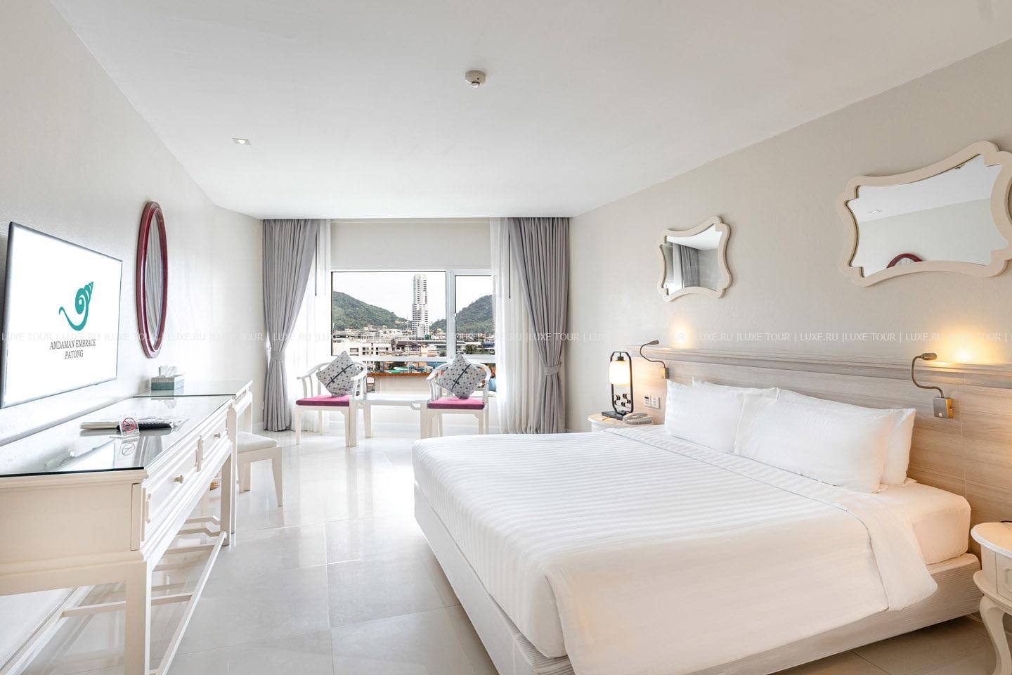 Andaman Embrace Patong расположен среди пышной зелени тропического сада, всего в паре шагов от белоснежного пляжа Патонг. Откройте для себя первоклассный курорт, состоящий из двух зданий: Andaman Wing и Premier Wing. Интерьеры отеля навеяны китайско-португальскими мотивами Пхукета, а сервис отвечает самым высоким современным стандартам. Отель удобно расположен в пешей доступности от магазинов и ночных клубов. Погрузитесь в атмосферу максимального комфорта и стиля в современных номерах. В каждом номере теплые тона и гармонично подобранная деревянная мебель создают умиротворяющую и элегантную атмосферу. Насладитесь потрясающим видом на прекрасный бассейн или панорамным видом на пляж Патонг. Гости могут насладиться разнообразием блюд в ресторанах и отдохнуть за экзотическом коктейлем в барах, поплавать в большом лазурном бассейне, поддержать форму в фитнес-зале и расслабиться в спа-центре, а детей ждут веселые развлечения в мини-клубе. Andaman Embrace Patong — прекрасный отель для пляжного и семейного отдыха.