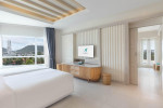 110 м2. Состоит из двух спален с кроватью king-size и двумя кроватями twin, ванной комнаты, мебелированного балкона, вид на море.