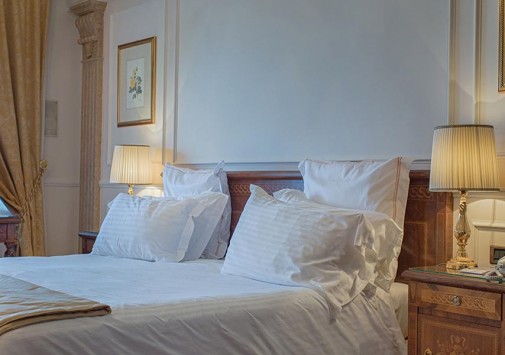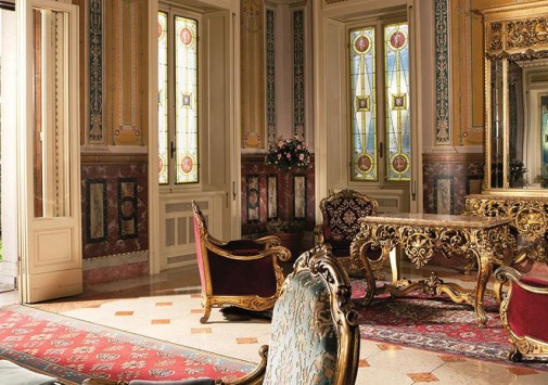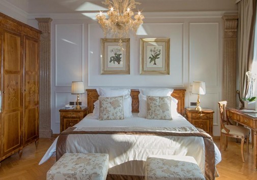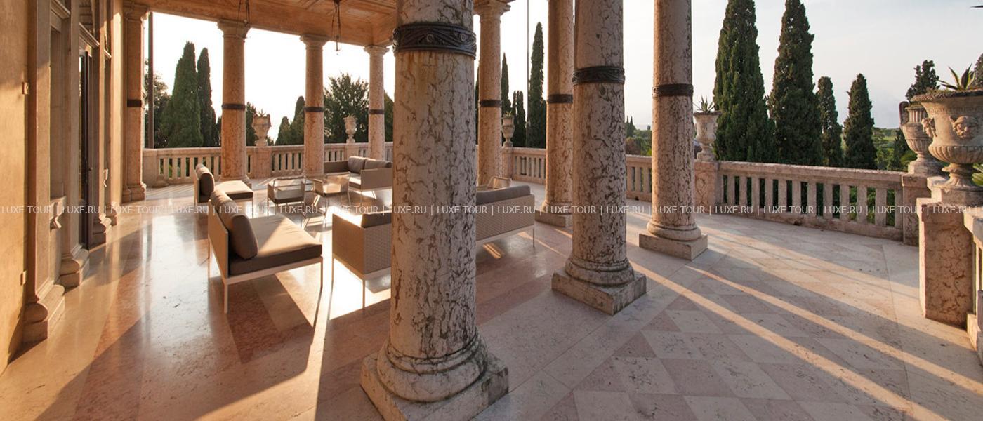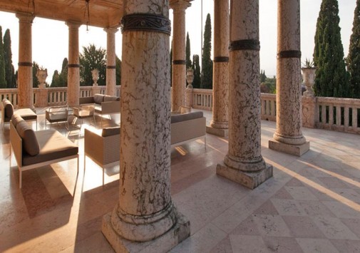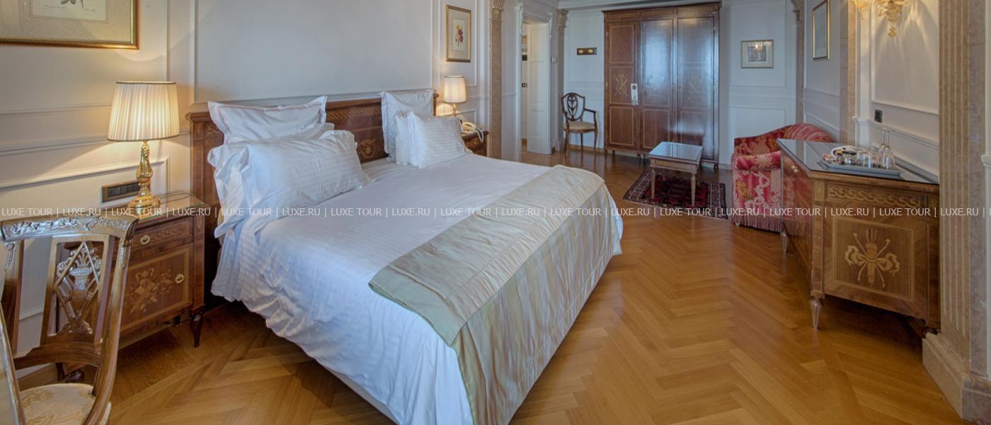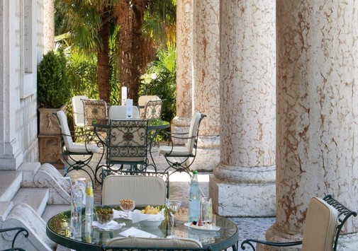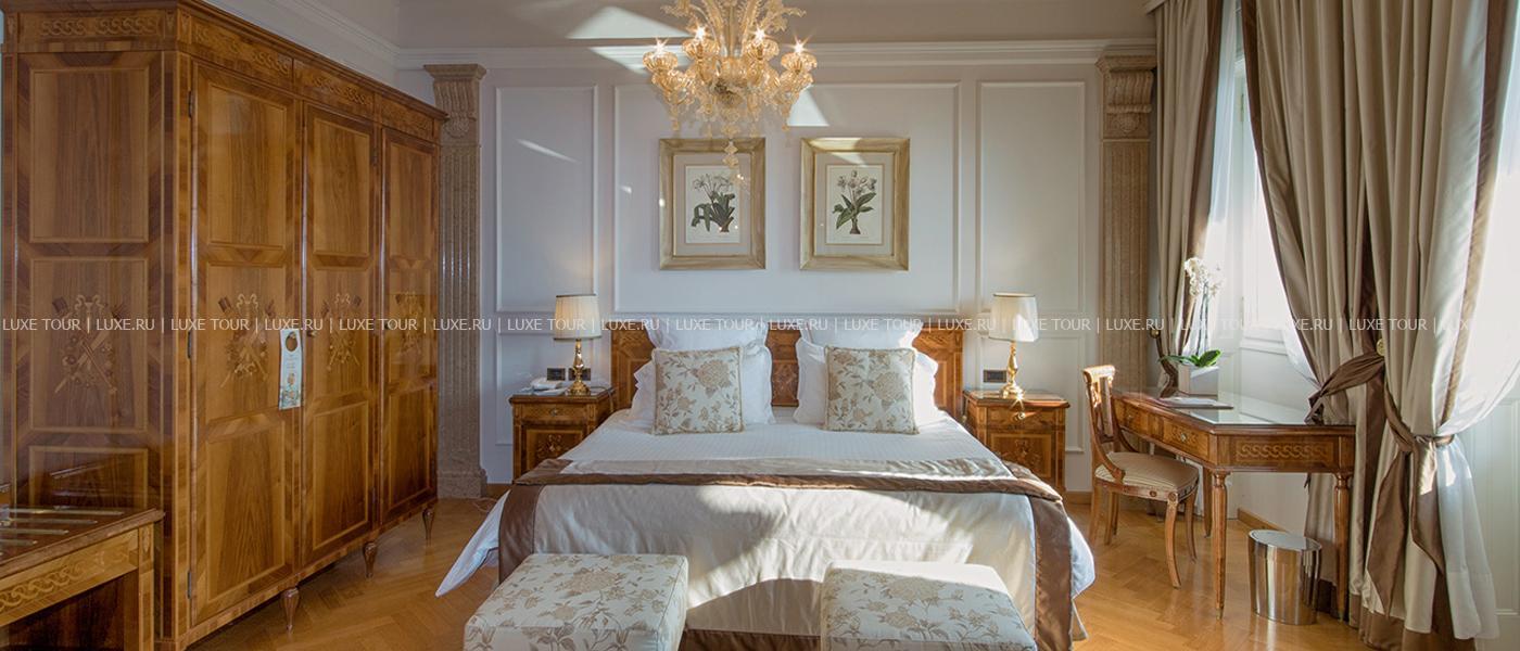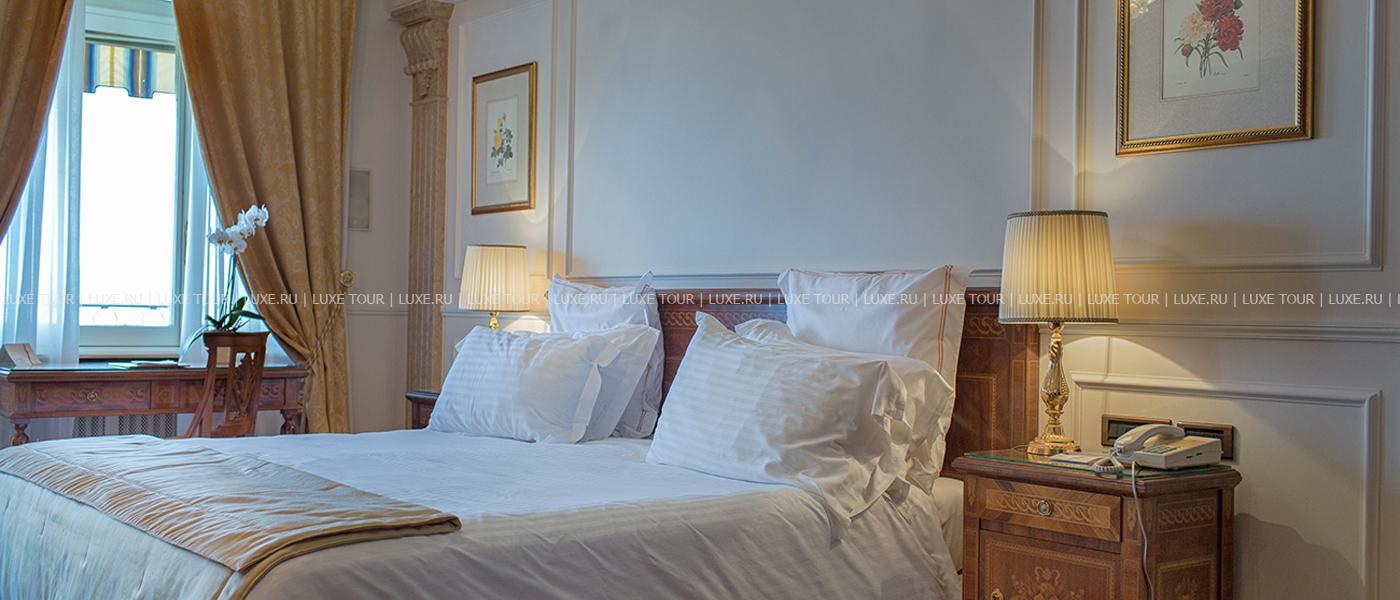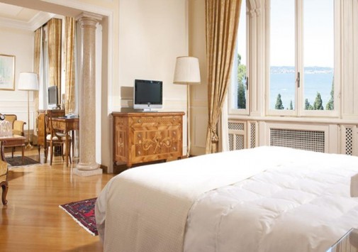 Известный ценитель итальянского искусства герцог Козериц стремился стилизовать интерьеры своего жилища под роскошные дворцы классической Италии. Следы этой концепции легко заметить и в наше время: интерьеры холлов отделаны веронским мрамором, украшены античными колоннами, уникальными росписями и мозаиками. Органичной частью гостиничного комплекса предстает огромный парк, где находятся римские развалины, скульптуры, а также главная гордость отеля – обыгрывающие различные мифологические сюжеты скульптурные композиции фонтанов, являющиеся подлинными произведениями искусства. В отеле есть открытый бассейн, теннисный корт, собственный пляж на берегу озера, ресторан, коктейль-бар и бар-барбекю.