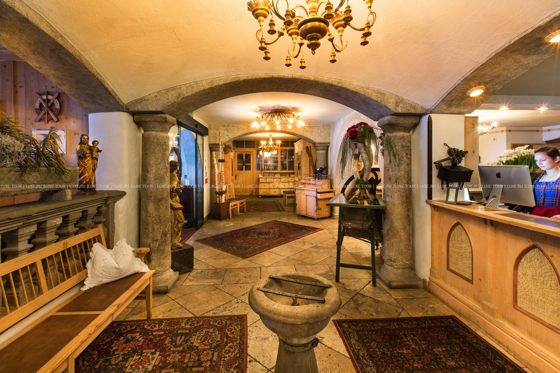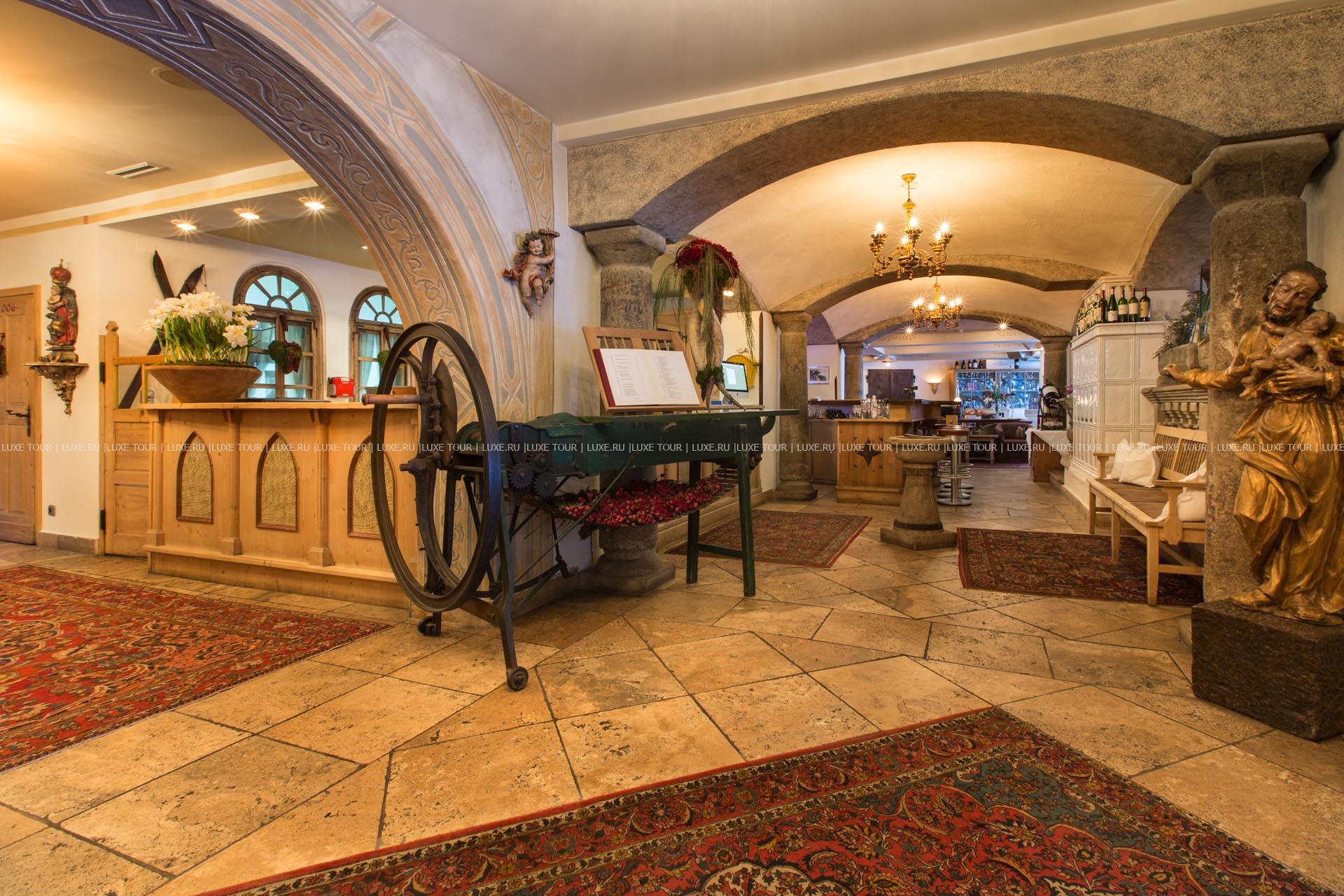 Семья Raffl уже во втором поколении владеет St.Antoner Hof, бережно храня исторические традиции и поддерживая гостеприимную атмосферу. Внутреннее убранство отеля продумано до мельчайших деталей — старинные своды, камень и натуральное дерево, тирольские печи и холл с мягкими креслами и огромным камином, хрустальные люстры и зеркала в тяжелых рамах, уникальные антикварные вещи и утонченные предметы искусства воссоздают обстановку прошлых веков. В каждом номере — самые комфортабельные условия и индивидуальный дизайн, выдержанный в альпийском стиле, с деревянной отделкой и удобной, с изящной резьбой, мебелью из натурального дерева, тирольскими печами, яркими занавесками и изысканными украшениями.