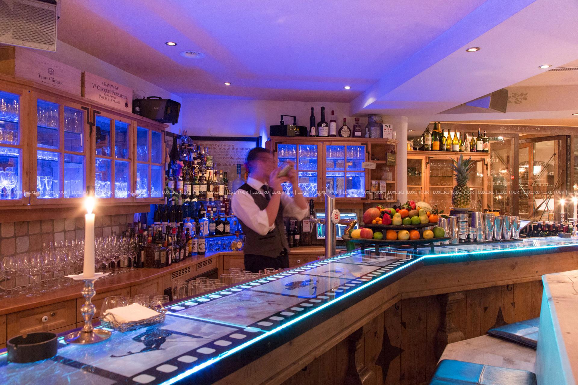 - В уютном баре приятно отдохнуть с бокалом изысканного вина и хорошей сигарой.