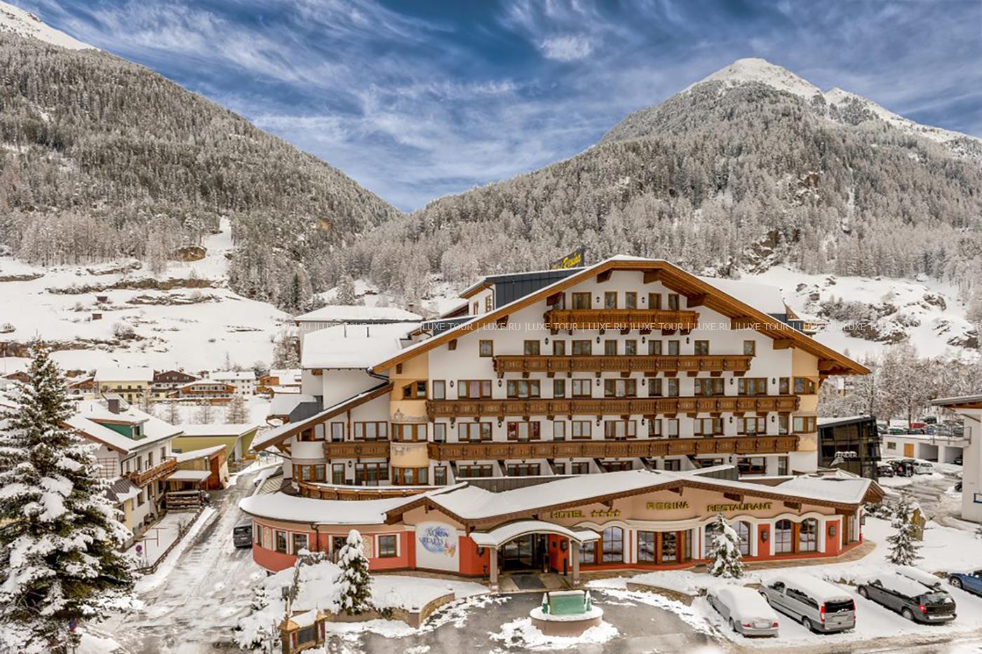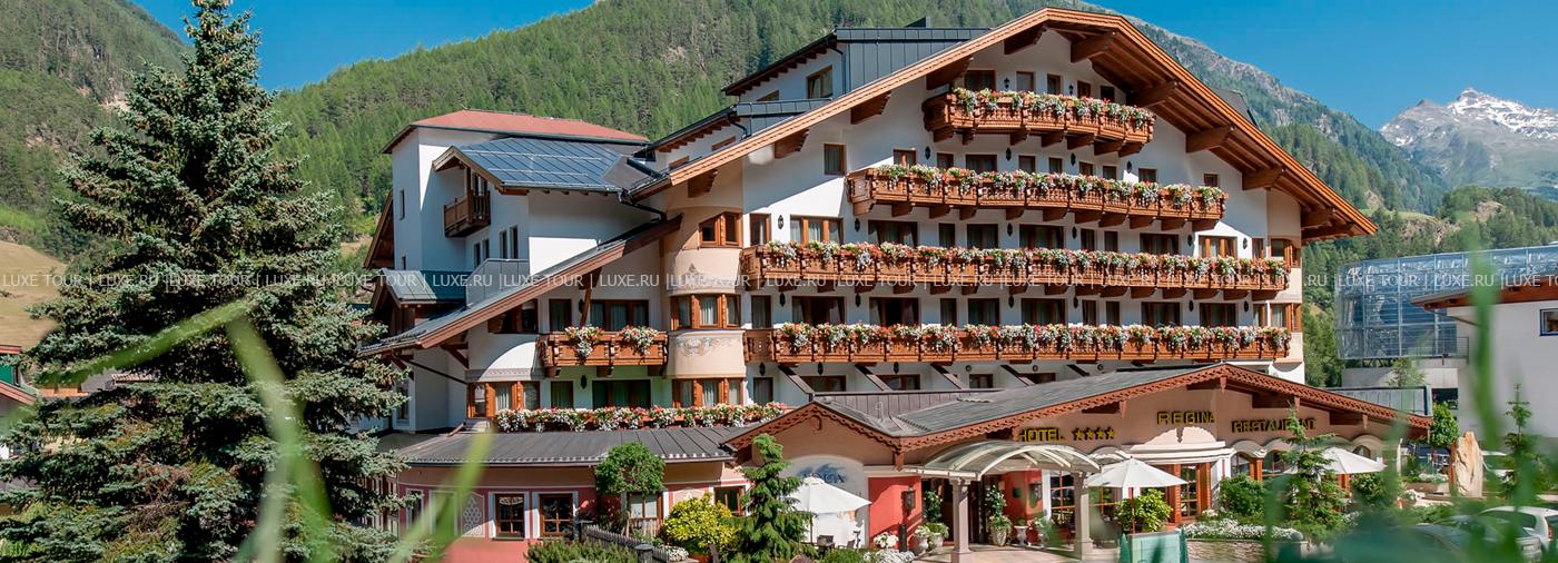 Расположенный в центре горнолыжного курорта Sölden, Regina является современным отелем, предлагающим многообразие услуг и гостеприимную атмосферу. В комфортабельных номерах — элегантные интерьеры, выполненные в современном стиле и выдержанные в светлых тонах, с удобной мебелью, ковровым покрытием, мягким освещением, во многих номерах есть тирольская печь. В отеле находится Оздоровительный СПА Центр, предлагающий широкий спектр услуг, здесь есть сауны, грот с морской водой, турецкая баня, джакузи.