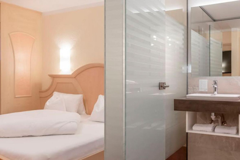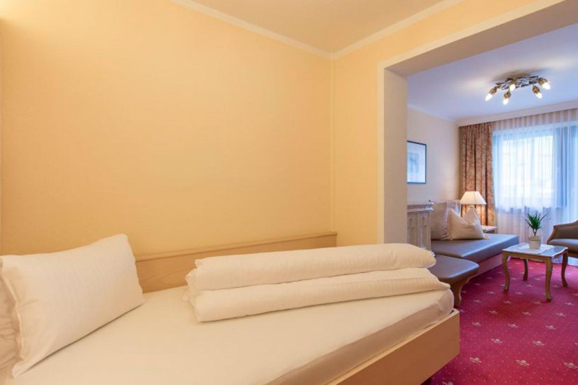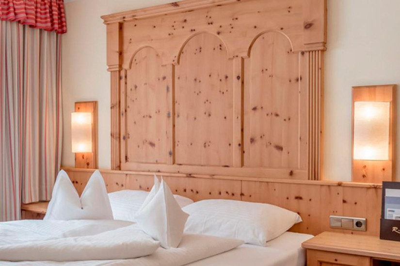 - Отель располагает комфортабельными номерами различных категорий, включая Single Room C, Double Room B, Superior Suite E, Regina Suite G, Panorama Suite F, Luxury Family Suite H. Во всех номерах — элегантные интерьеры, выполненные в современном стиле и выдержанные в светлых тонах, с удобной мебелью, ковровым покрытием, мягким освещением, во многих номерах есть тирольская печь.