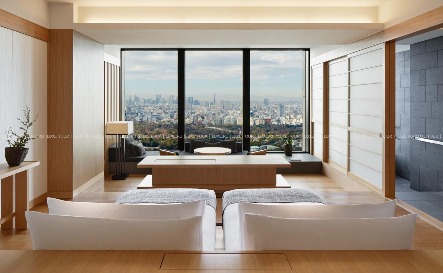 Aman Tokyo занимает верхние этажи знаменитой башни Отэмати, возвышающейся рядом с Императорским дворцом и торговыми кварталами Гиндзы. Фешенебельный отель отражает уникальные традиции Японии: элегантные лаконичные интерьеры, в которых практически отсутствуют пространственные границы и используются натуральные местные материалы и аутентичные предметы декора, очаровательный внутренний сад, окруженный галереей «энгава», перегородки «сёдзи» и ванны «офуро» в просторных номерах. При этом гостей ждет весь спектр ультрасовременных удобств и услуг — от изысканных ресторанов с панорамным видом на Токио и сады Императорского дворца, стильного бара и винного погреба с богатой коллекцией вин и саке до шикарного спа-комплекса с большим панорамным бассейном, фитнес-центром и разнообразием эксклюзивных процедур. Aman Tokyo сочетает космополитичную атмосферу современного городского отеля и неповторимый колорит древней Японии.