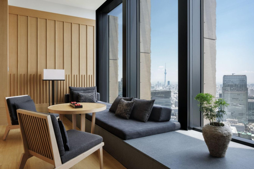 - В отеле номера различных категорий, которые сочетают современный комфорт, элегантный дизайн и декор в японских традициях — от классических местных материалов, таких как камфарное дерево и натуральный камень, и перегородок «сёдзи» из бумаги «васи», до японских ванн «офуро». Из панорамных окон номеров открывается потрясающий вид на Токио и сады Императорского дворца.