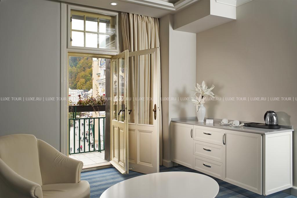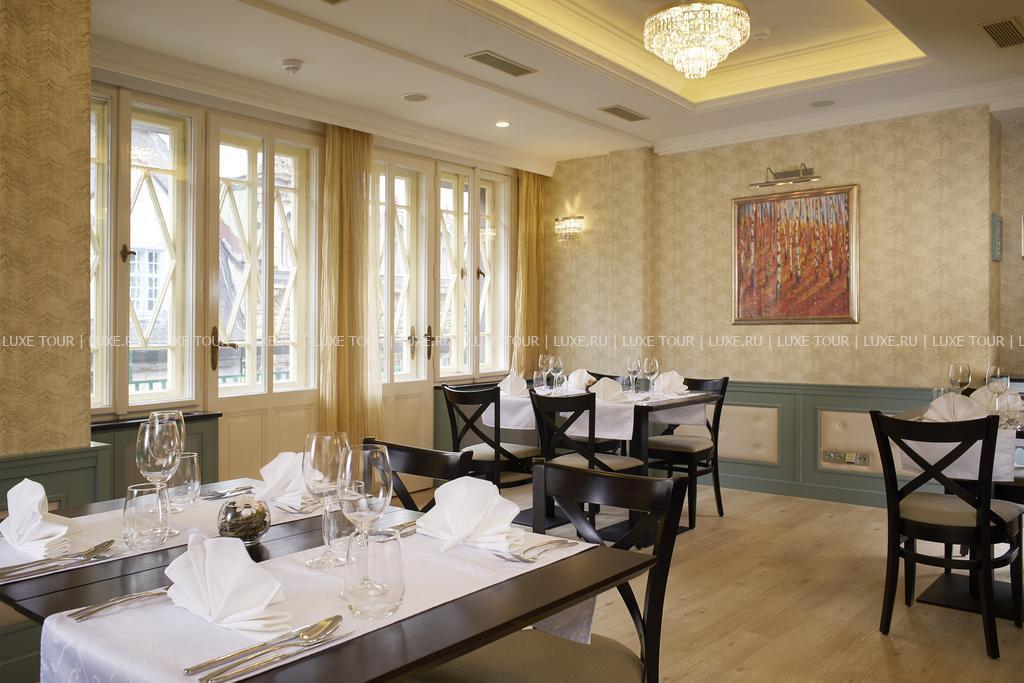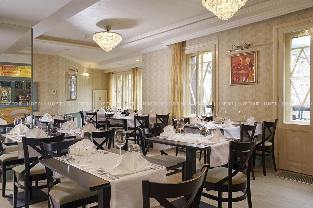 На верхнем этаже отеля находится элегантный ресторан, предлагающий разнообразие интернациональных и региональных блюд и прекрасный вид на Карловы Вары. Здесь же работает уютный бар.
