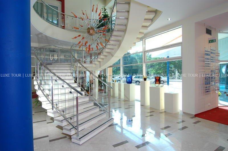 Интернет в здании санатория — WiFi, подключение бесплатно, в бизнесс центре за дополнительную плату, в номерах — бесплатно, кабельное подключение везде, кроме номеров Deluxe Suite, в которых WiFi подключение. Парковка для автомобилей 50 мест, автобусы 2 места, гараж для автомобилей на 60 мест — все за дополнительную плату, электрическая противопожарная система в каждом номере, камерное наблюдение в некоторых помещениях, в ночное время работает служба охраны, портье, багажное отделение, обменный пункт, службы секретаря, химчистка, прачечная, глажение за дополнительную плату. Номера для инвалидов. В здании санатория 6 лифтов.