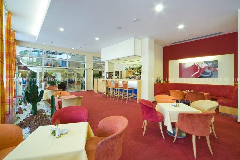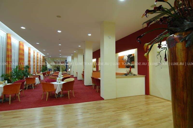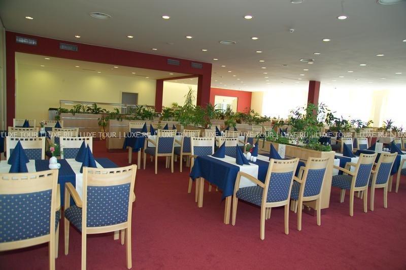 В санатории 3 ресторана общей вместительностью 582 эеловека. Два бара на 153 человека. Ресторан Charlеston, просторный и модерный ресторан с богатыми цветочными украшениями — время работы 7:30—10:00, 12:00—14:30, 17:30—-20:00 (курение в ресторане запрещено). Ресторан Melody, ресторан модерного типа, форма питания — шведский стол— время работы 7:30—10:00, 12:00—14:30, 17:30—20:00 (курение в ресторане запрещено). Ресторан Opera, ресторан с атрактивным дизайном, форма питания — шведский стол, A la carte — доготовка блюд прямо перед гостем Show kitchen — время работы 7:00—10:00, 12:00—15:00, 18:00—22:00 (курение в ресторане запрещено). Бар Blues Cafe, танцевальный бар с модерным интерьером и баром, широкий выбор теплых и холодных напитков и коктейлей, замечательный выбор вин и сигар, A la carte — теплые и холодные блюда, в летний период открыта терасса — количество мест - 76+7 у бара+24 летняя терасса — время работы 9:00—24:00 (курение в баре разрешено). Лобби — бар с летней терассой + Atrium, отличное место для отдыха с обслуживанием, широкий выбор теплых и холодных напитков, 70 мест, время работы — 9:00—24:00 (курение в баре разрешено).