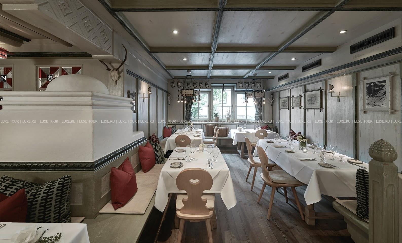 Основной ресторан отеля восхищает разнообразием отменных блюд, а истинные гурманы могут насладиться кулинарными изысками в гастрономическом ресторане Neuwirt, награжденном почетной звездой Michelin. Также к услугам гостей — уютный бар с камином, бар на крыше у бассейна, а для деловых встреч в отеле функционируют 5 современно оснащенных конференц-залов.