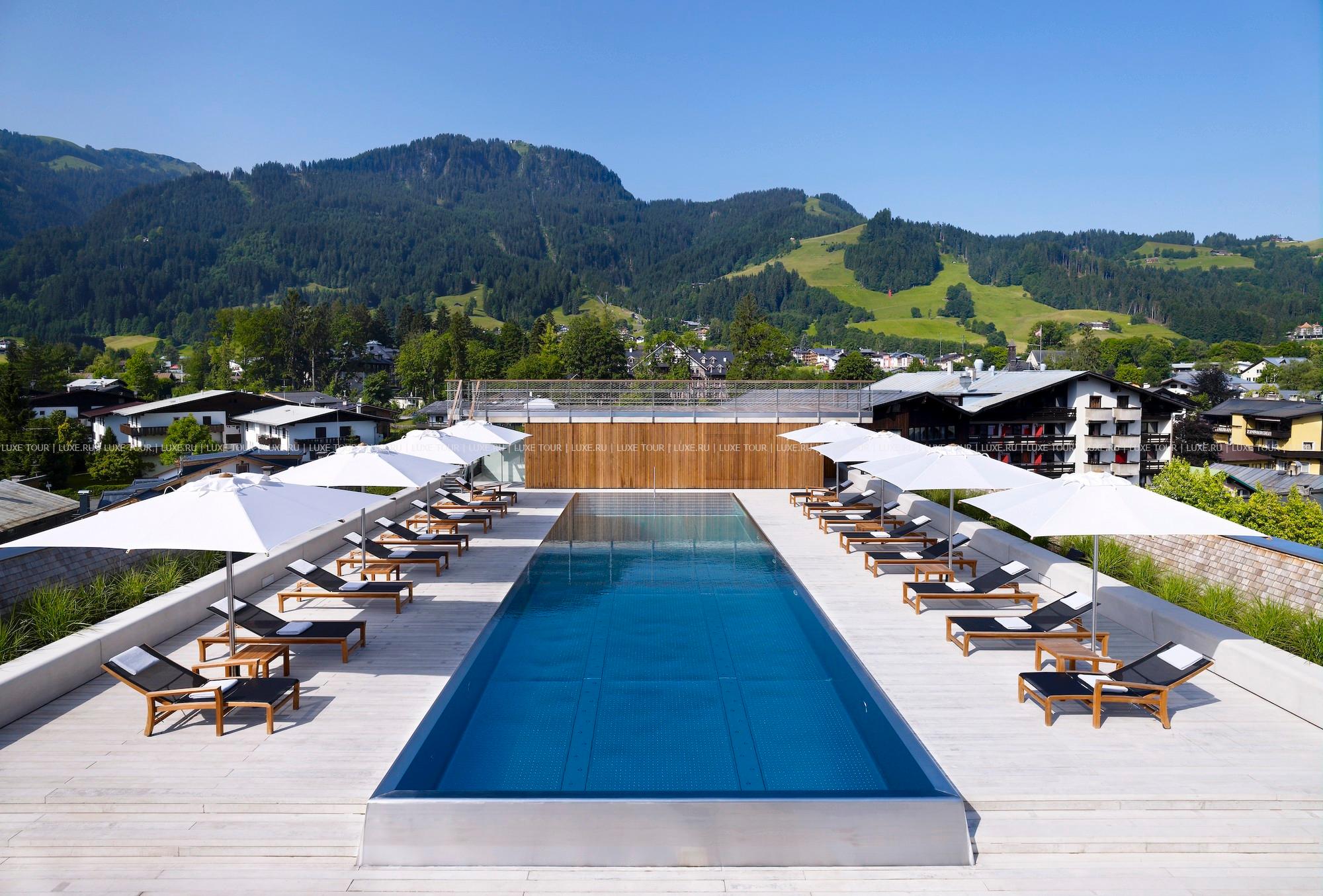 Великолепный СПА комплекс площадью 1000 м2 — это особый мир, где царит атмосфера покоя и релаксации, здесь созданы отличные условия для снятия стресса и восстановления сил — крытый бассейн, сауны, парные, фитнес-центр, салон красоты и многое другое. Особая гордость Schwarzer Adler Wellness-Spa Кицбюэль — новый бассейн на крыше отеля с потрясающим панорамным видом на горные ландшафты курорта.