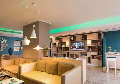 - В стильном баре можно отдохнуть за бокалом вина, коктейлем или чашечкой кофе.