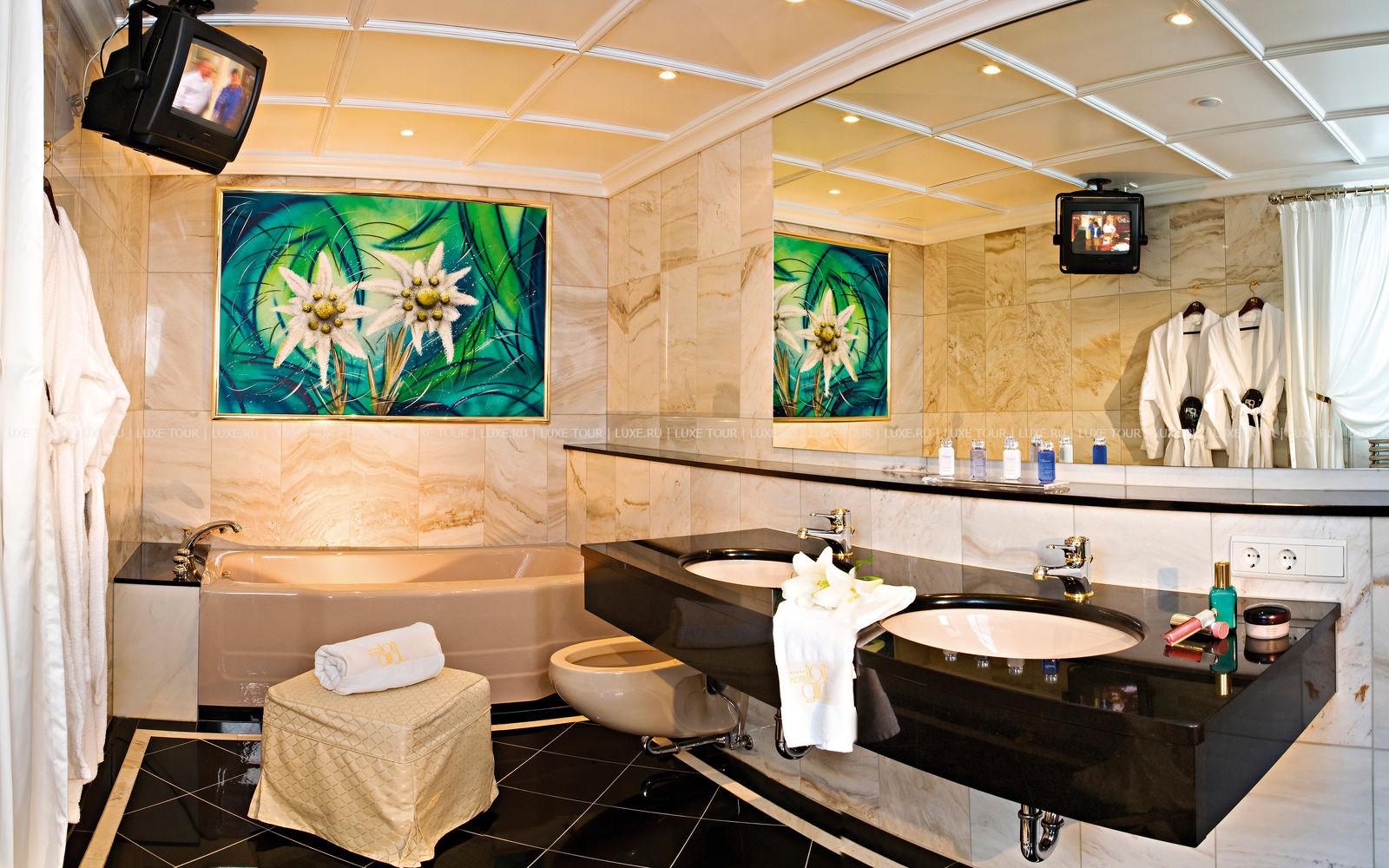 В отеле открыт Оздоровительный/СПА Центр, включающий: панорамный бассейн, открытую и крытую джакузи, сауну на свежем воздухе, финскую сауну, био-сауну, парную, травяную сауну, различные виды душа, ледяной фонтан, водолечение по методу Kneipp, солярий, зал для релаксации с водными кроватями, тренажерный зал, зимний сад с камином и витаминным баром, а также 7 процедурных кабинетов, предлагающих большой выбор услуг по уходу за здоровьем и внешностью. В ресторане Schalfkogel сервируются разнообразные буфеты завтраков, в элегантном ресторане Tiroler Jagdstube подаются деликатесы тирольской кухни. Ресторан Murmelstube, оформленный в традиционном альпийском стиле, предлагает изысканные блюда-фондю.
