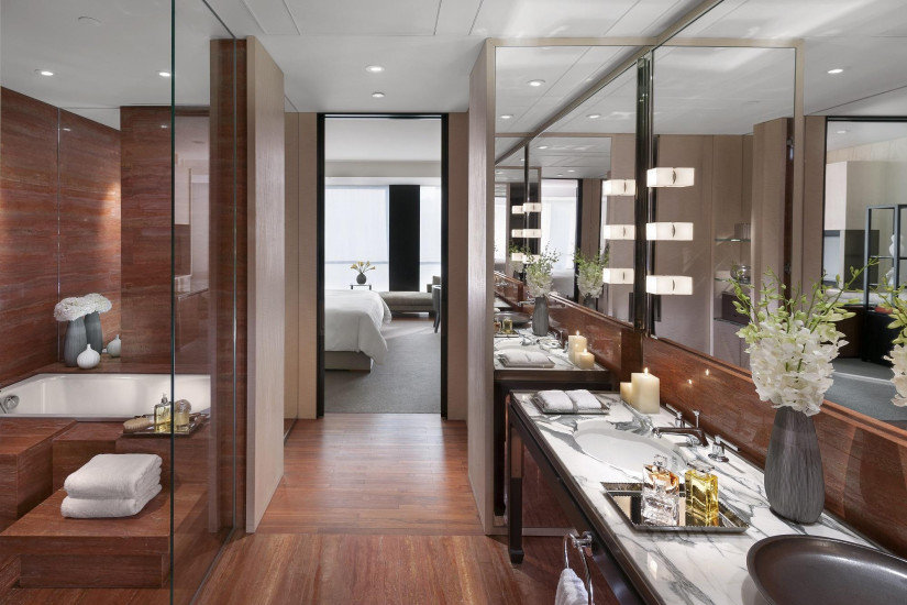 60 м2. Состоит из спальни с кроватью king-size или с двумя кроватями twin, с зоной отдыха и рабочей зоной, фойе, гардеробной, ванной комнаты с ванной и душевой кабиной с тропическим душем. Вид на город, сады на крыше Taikoo Hui или на бассейн.