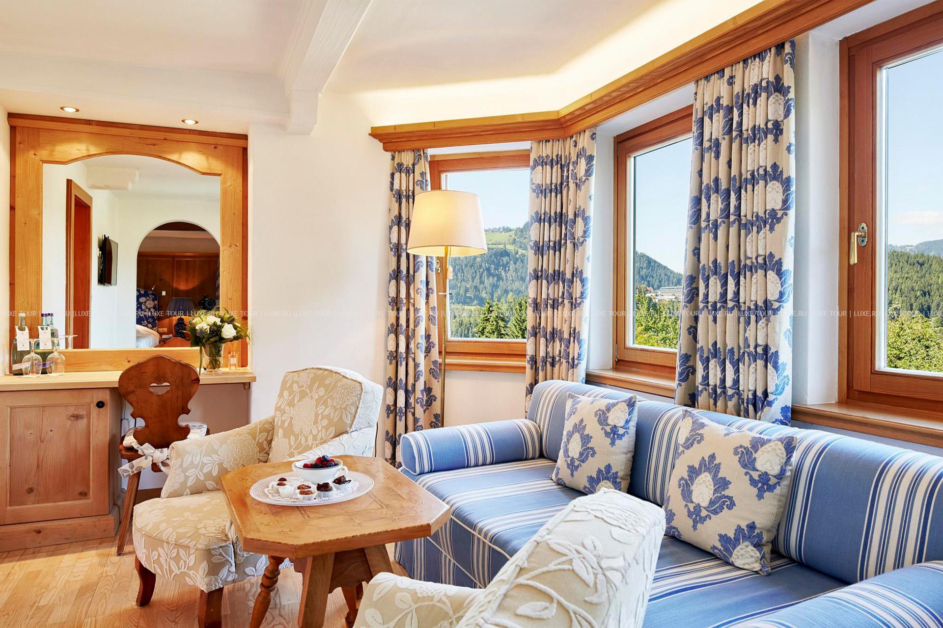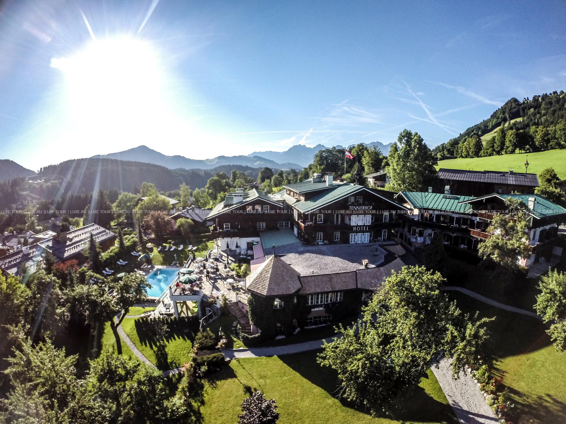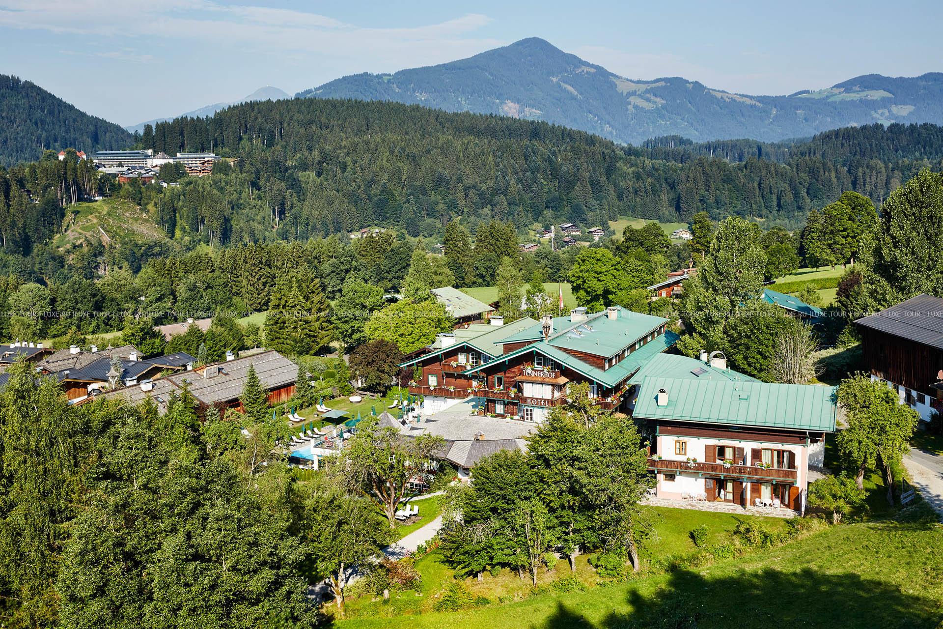 На фоне окутанных дымкой горных вершин, среди просторного ухоженного сада с изумрудными лужайками, благоухающими альпийскими цветами и вековыми деревьями, расположились аккуратные, словно сошедшие со сказочных иллюстраций, здания Romantikhotel Tennerhof, выполненные в традиционном тирольском стиле, с деревянными балкончиками, башенками и фасадами, увитыми зеленью. Свою историю отель ведет ещё с 1679 года, когда здесь был построен фермерский дом, причём благодаря особенному расположению Tennerhof, фермеры должны были предупреждать жителей Кицбюэля о надвигающейся грозе, вывешивая на крыше кусок белой материи, — это служило сигналом для церковного звонаря, который бил в громадный колокол, и люди верили, что громкий колокольный звон рассеет грозовые тучи. Прошли столетия, а эта традиция жива и по сей день…В 1923 году Tennerhof был приобретен семьей Фон Пасквали (Von Pasquali), которая открыла уютный и элегантный отель и уже много лет бережно хранит исторические традиции, встречая гостей с радушным тирольским гостеприимством. В номерах — индивидуальные элегантные интерьеры, с отделкой из натурального дерева, ковровым покрытием на полах, изящной мебелью, украшенной ручной росписью и искусной резьбой, с изысканными украшениями и предметами антиквариата из семейной коллекции владельцев отеля. Romantikhotel Tennerhof располагает Оздоровительным/СПА Центром, включающим: открытый бассейн с подогревом в саду, окруженный лужайкой для принятия солнечных ванн, крытый бассейн, сауну, парную, водолечение по методу Kneipp, джакузи (функционирует зимой), а также массажный кабинет и кабинеты маникюры и педикюра.