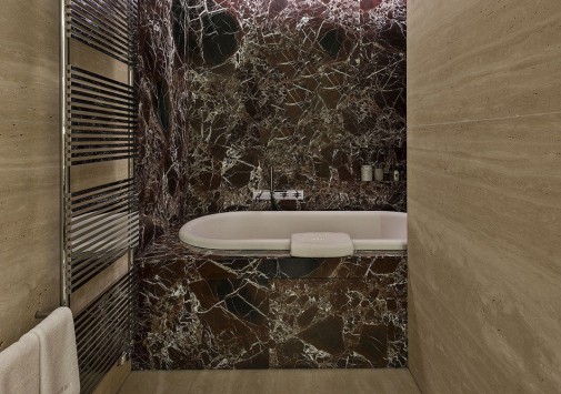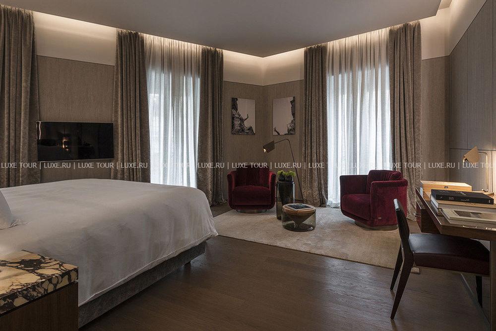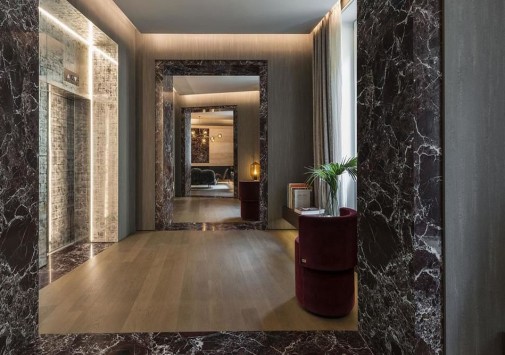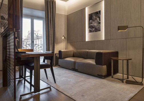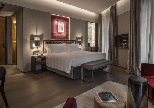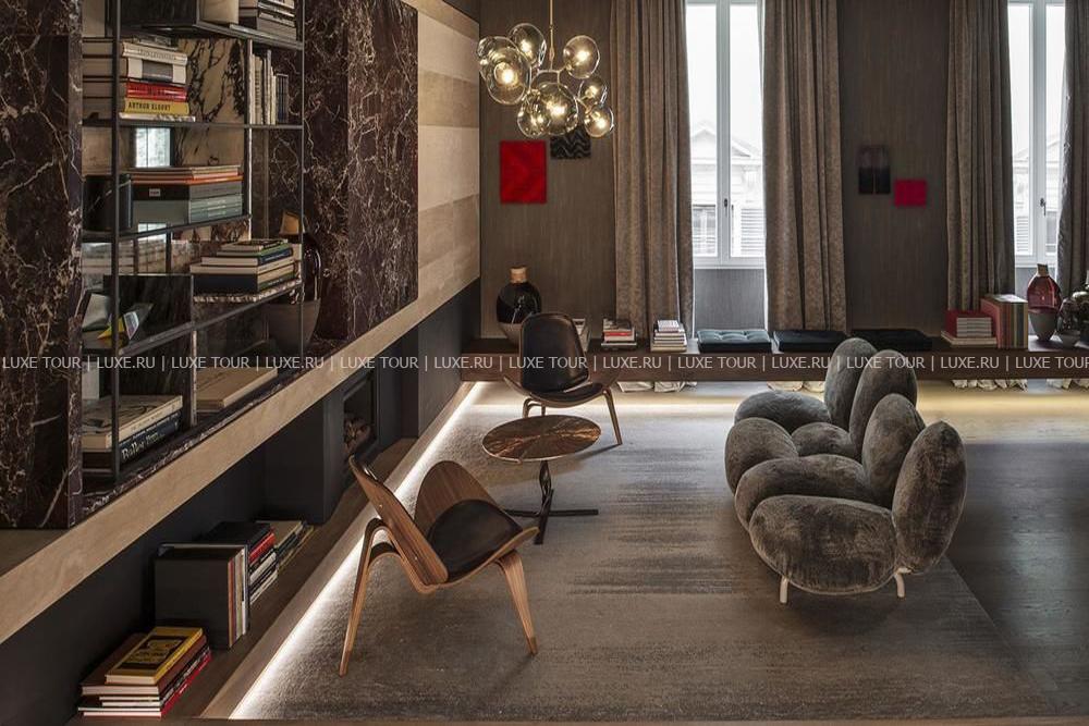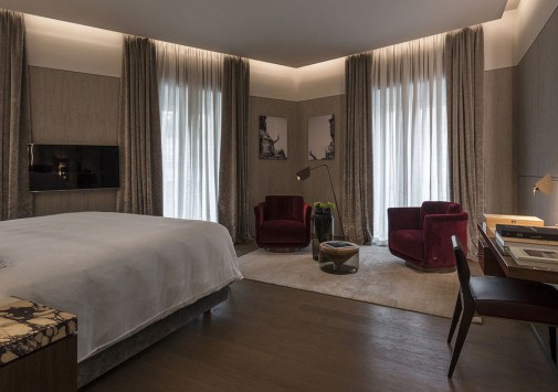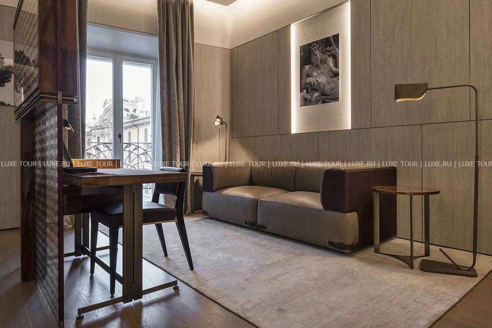 Fendi Private Suites Рим разместился в историческом палаццо с видом на Виа-Кондотти, расположенном в самом сердце Вечного города, в двух шагах от Испанской лестницы и фонтана Треви. Этот дворец XVII века когда-то принадлежал знатному роду Бонкомпаньи-Людовизи, а с 2005 года стал штаб-квартирой дома моды Fendi. Сегодня на первом этаже здания находится самый большой бутик Fendi, на втором – частные апартаменты для VIP-клиентов знаменитого итальянского бренда, на верхнем этаже расположен японский ресторан известной сети Zuma и панорамная терраса с баром, а третий этаж занимает фешенебельный бутик-отель с семью шикарными сьютами. Интерьеры номеров отражают философию Fendi, в которой переплетены классика и инновации, контрасты и необычные сочетания, история и фантазия, мастерство и искусство. Пьетро Беккари, исполнительный директор всемирно известного дома моды называет Fendi Private Suites Рим «символом бренда и уникальным местом, предельно точно воссоздающим роскошь в понимании Fendi».