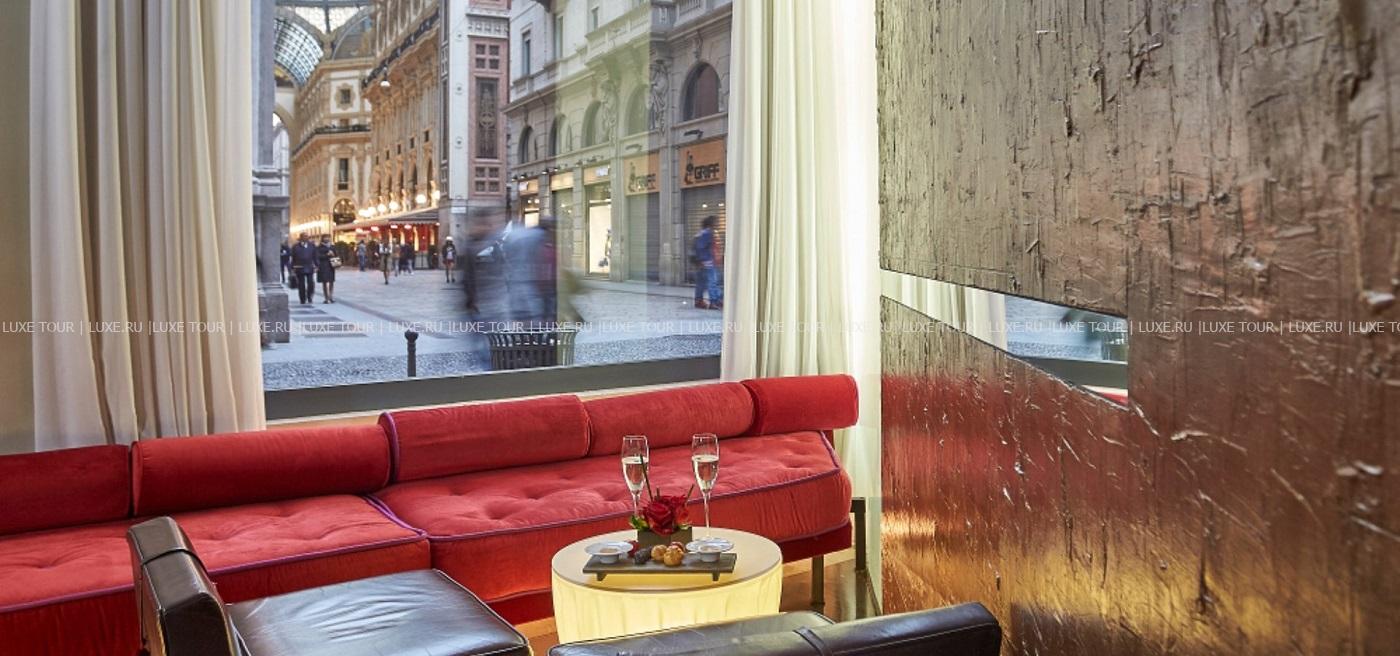 • Бар G — приятное место, где можно отдохнуть и попробовать различные коктейли и напитки в эксклюзивной обстановке с видом на знаменитую миланскую Галерею.