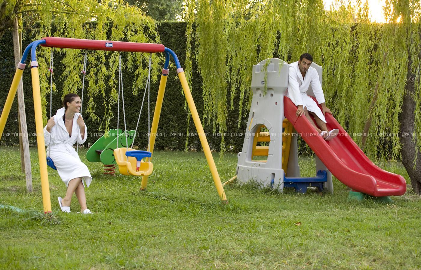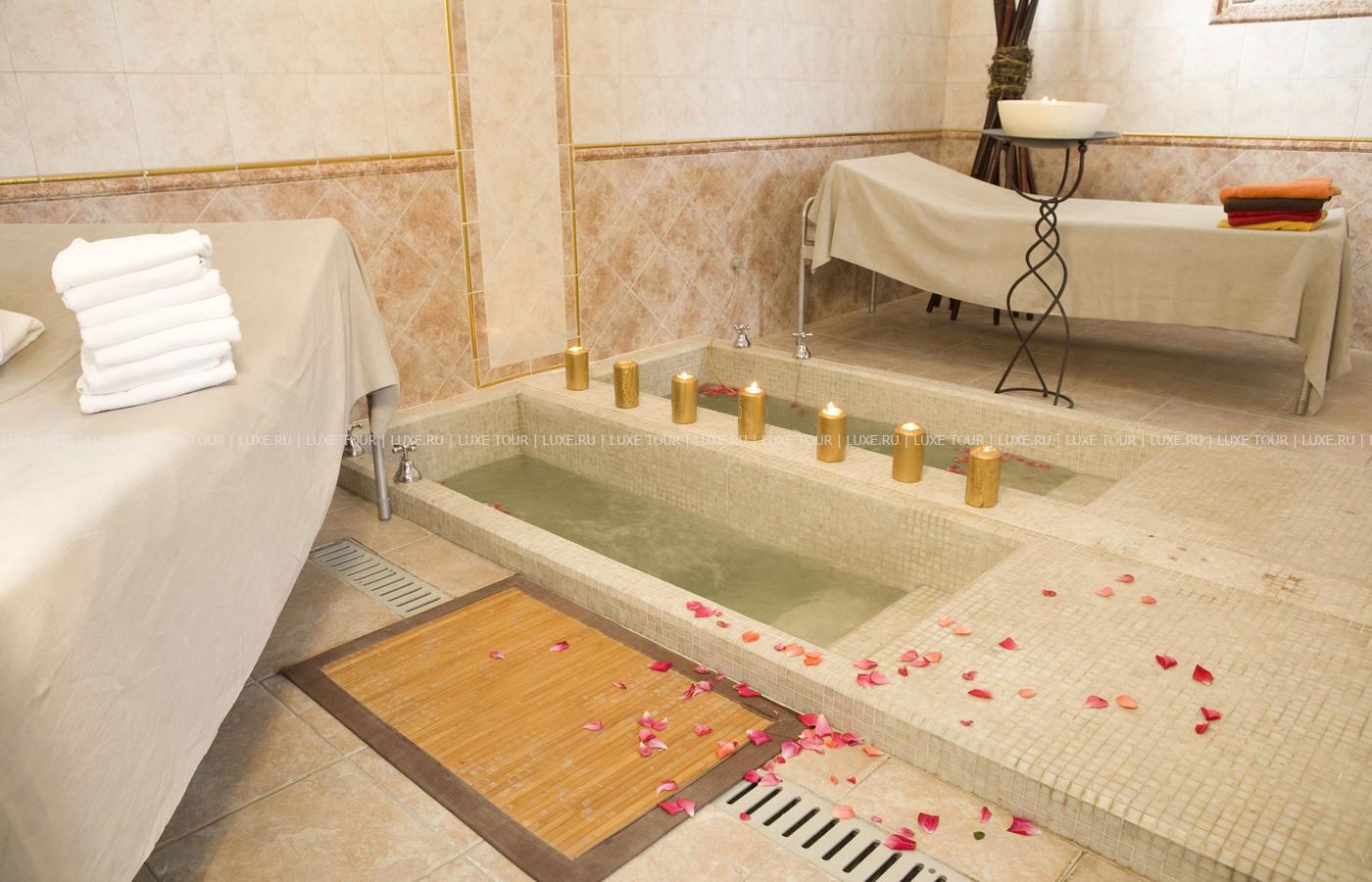 В комплекс отеля входят ресторан и 3 бара, различные спортивные сооружения (включая теннисный корт с вечерним освещением, мини-гольф, баскетбольную площадку), а также Spa-центр, предлагающий 2 олимпийских бассейна с подогревом (крытый и открытый), гидромассажные ванны, паровую баню, кабинеты для массажей и грязелечения, сауну, солярий, тренажерный зал и салон красоты, где используется собственная косметика отеля и косметические линии Maria Golland. В центре предлагается широкий выбор лечебно-оздоровительных программ, включающих фитотерапию, иглоукалывание, остеопатию, различные виды массажа и грязевые ванны.