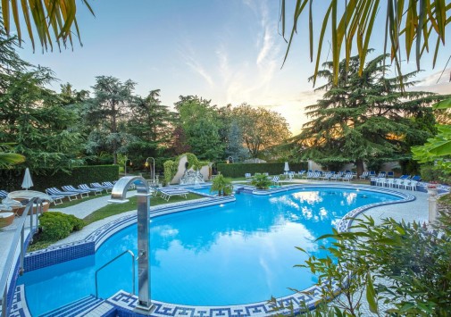 Отель расположен в центре курорта Абано Терме в 60 км от Венеции. Пятиэтажное здание было построено в 1968 году, не так давно оно было полностью реконструировано. Вокруг раскинулся прекрасный парк (6000 кв.м), украшенный многочисленными беседками в классическом стиле с колоннами и скульптурами. Классическое парковое оформление прекрасно сочетается и внутренним убранством, отличающимся особенным вниманием к деталям, отменным вкусом и изяществом. Интерьеры холлов и комнат украшены старинной мебелью и венецианскими светильниками, потолки покрыты позолотой, полы — дорогими коврами. Четвертое поколение семьи Бариллари-Полетто, владеющей отелем, создало здесь теплую, семейную атмосферу. Роскошное оформление номеров служит лишь дополнением к тому особому настроению, которое создают царящие здесь необыкновенное радушие, исключительное спокойствие и безграничный уют. Идеальный баланс между новейшими технологиями, всеми составляющими комфорта в современном понимании и традиционным оформлением и домашней обстановкой номеров придадут вашему отдыху особое очарование.
