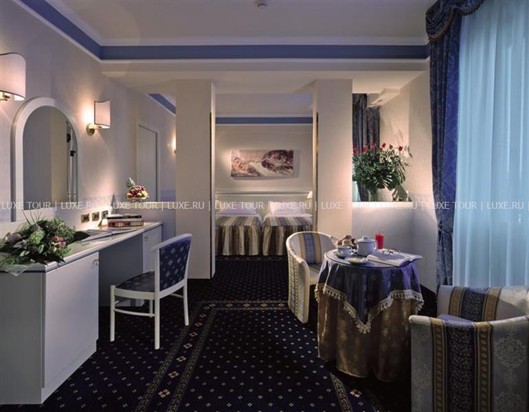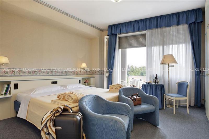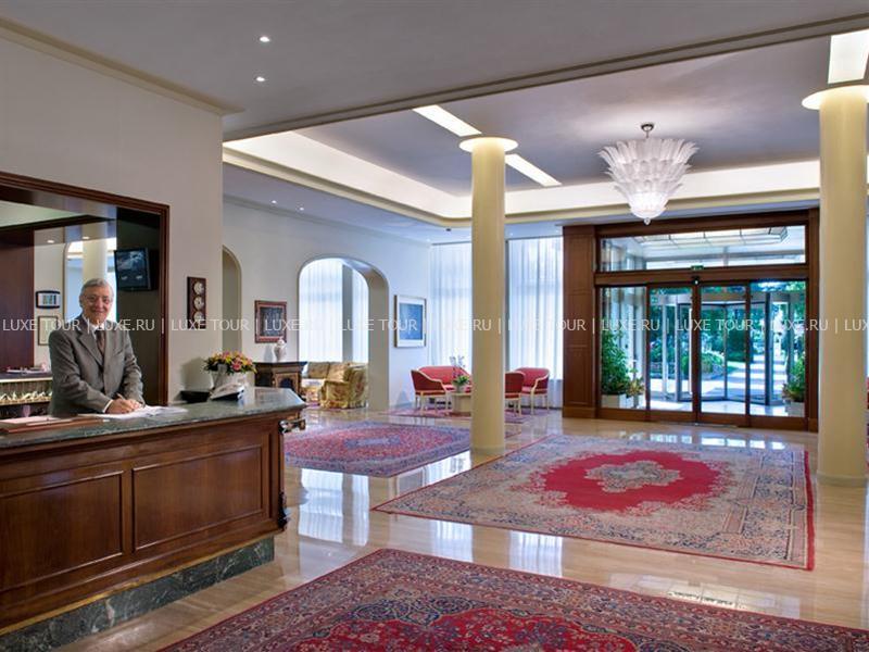 Отель расположен в центре курорта Абано Терме. Пятиэтажное здание построено в классическом стиле и окружено великолепным парком (20 га). Интерьеры оформлены венецианскими зеркалами и люстрами венецианского стекла, встречается старинная мебель и подлинные картины, как, например, полотно Матильды Арбей — известной постимпрессионистки, которое она подарила отелю. Гостиная отеля примечательна своей колоннадой и эффектной винтовой лестницей, ведущей в библиотеку и в зал для игры в бридж. Здесь вечерами звучит живая фортепианная музыка, устраиваются концерты. В отеле есть собственный SPA-центр и центр красоты, 4 термальных бассейна, уютный ресторан и 2 бара, конференц-зал на 100 гостей, библиотека, читальный зал, зал для игр в бридж, парковка для автомобилей, гараж.