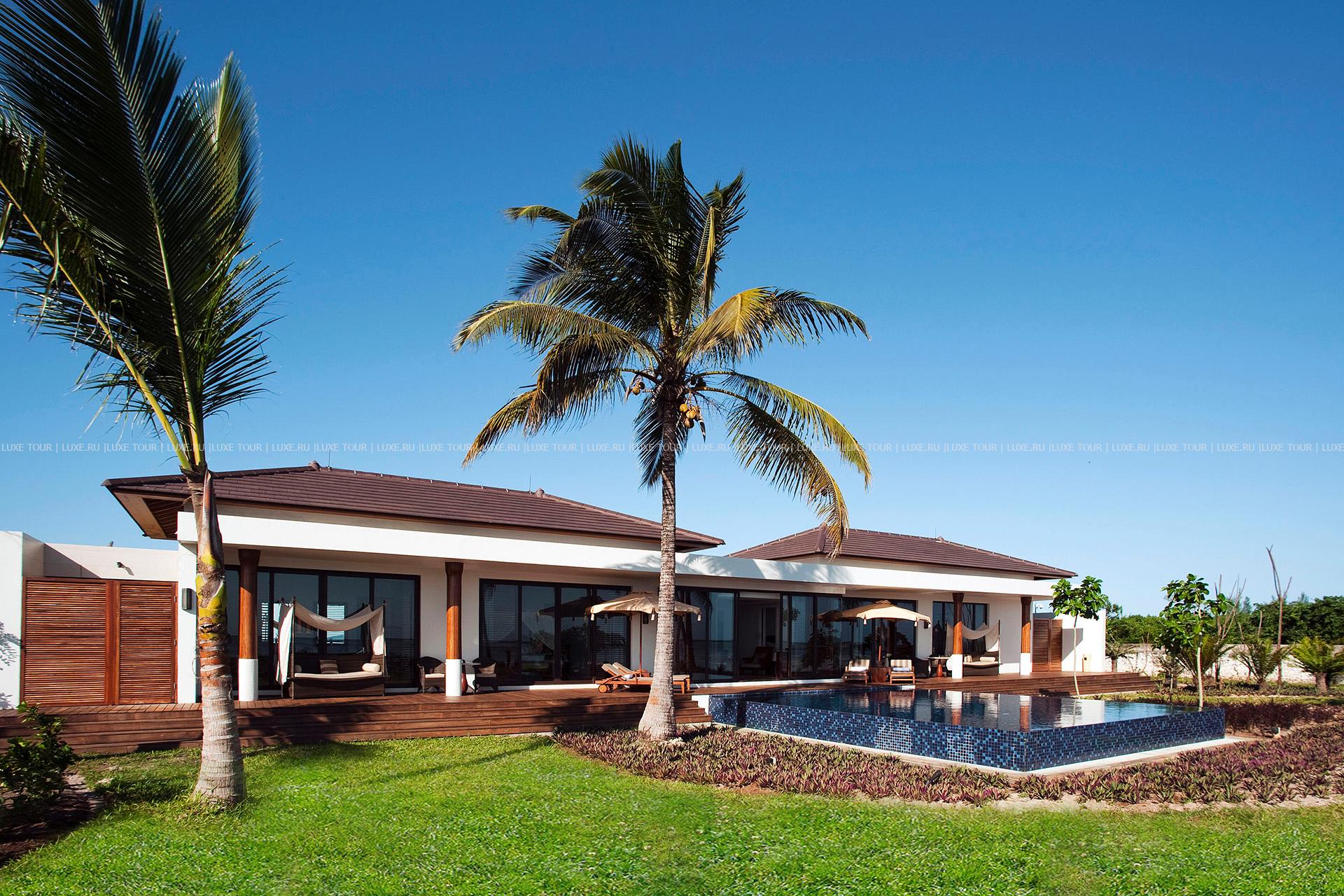 У просторного жемчужного пляжа и теплых вод Индийского океана, среди изумительного тропического сада и тенистых кокосовых пальм расположились великолепные виллы The Residence Zanzibar Танзания. Отель, расположенный в окружении девственной природы Занзибара, представляет колоритную эклектику стилей, навеянную влиянием Суахили, Индии, Омана и Великобритании. При этом The Residence Zanzibar Танзания предлагает гостеприимную и изысканную атмосферу в сочетании с современным сервисом высшего разряда. Гостей ждет размещение на шикарных, оборудованных по последнему слову техники виллах, располагающих собственными бассейнами. Также на территории отеля находится огромный (площадью почти 580 м2) бассейн, роскошный СПА центр, представляющий уникальные массажи и процедуры с элитными французскими средствами, центр водного спорта, теннисный корт, два ресторана с превосходной и разнообразной кухней, элегантные бары и большой выбор других услуг.
