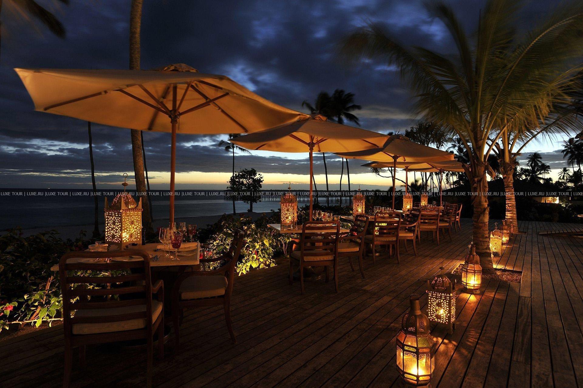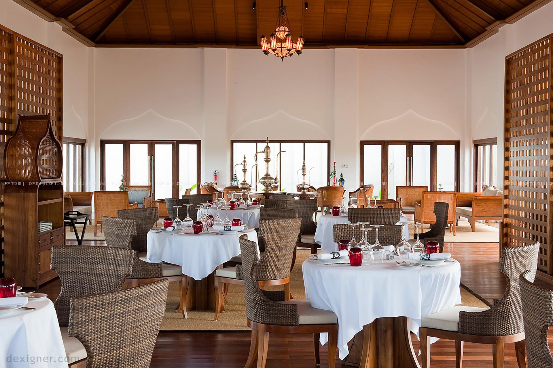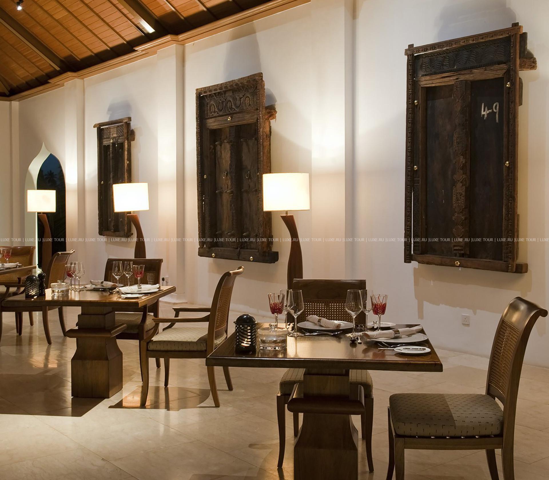 • Dining Room – главный ресторан отеля, предлагающий разнообразие блюд международной кухни, приправленных знаменитыми специями и пряностями Занзибара. К ресторану примыкает бар, воссоздающий атмосферу старинной Персии – с отделкой из местных пород дерева и бронзовой чеканки.