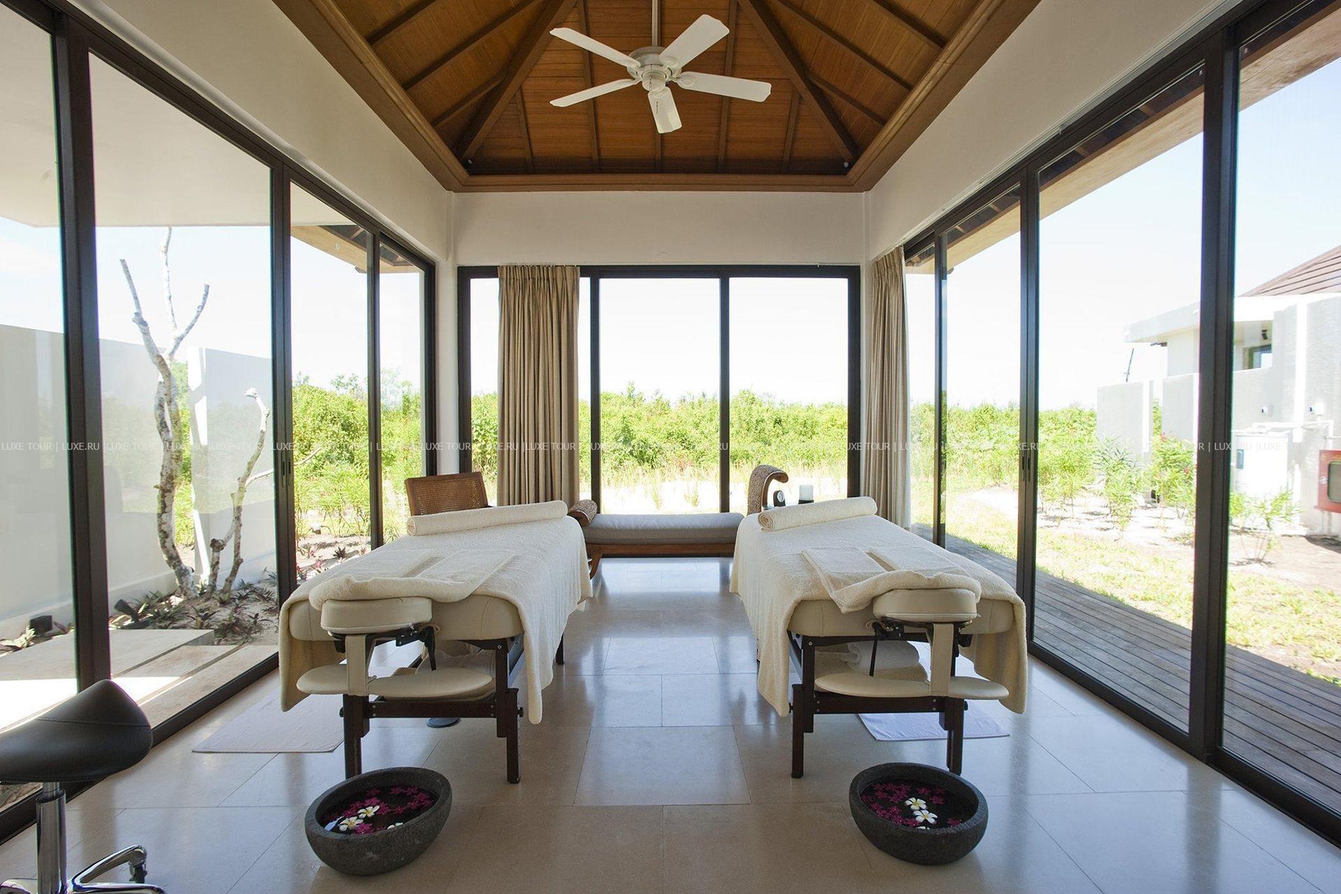 Отель располагает прекрасным СПА центром. Среди двух гектаров благоухающих садов расположены 6 процедурных павильонов, каждый из которых располагает собственным садом с ванной, открытым душем и зоной отдыха. Гостям предлагается разнообразие процедур по уходу за телом и лицом, включая массажи, специально разработанные для отельного СПА центра французским врачом Марком Вэйллом, уникальные лечебные массажи по методу Ohashiatsu а также процедуры с использованием французских средств Carita. Здесь же работает парикмахерский салон Carita.