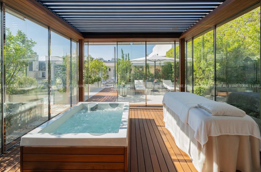 зоной, ванной комнаты, зоны с хаммамом, сауной, душем, джакузи и массажным столом. Максимальное размещение — 3 человека.