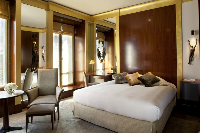 - 30-40 м2. Состоит из спальни с кроватью king-size, кроватью queen-size или двумя кроватями twin и рабочей зоны, ванной комнаты с подогреваемыми полами, ванной и тропическим душем. Имеет панорамные окнами с видом на улицу Rue de la Paix или во внутренний двор. Максимальное размещение - 3 человека.