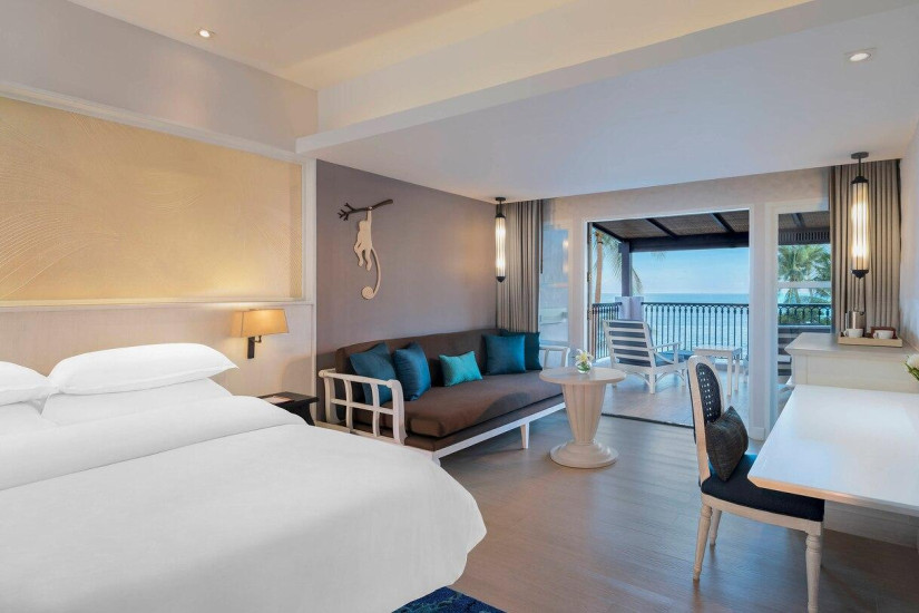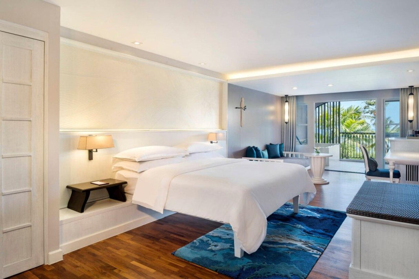 - В отеле 141 номер различных категорий, включая 132 Guest Rooms и 9 Suites. Просторные комфортабельные номера декорированы в элегантном современном стиле и выдержаны в бело-голубых тонах, а с балконов открывается прекрасный вид на пышные тропические сады и лазурный Сиамский залив.