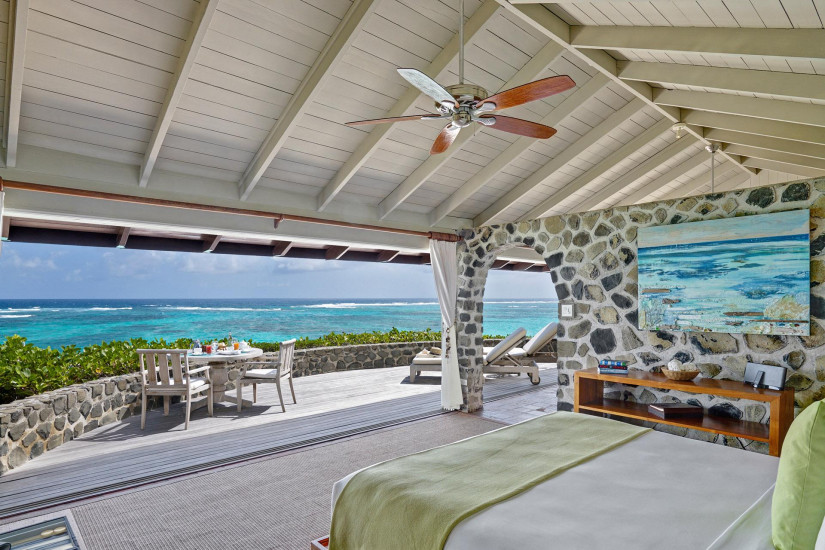 - В отеле предлагается размещение в коттеджах и виллах, среди которых 16 One Bedroom Cottages и 6 Two Bedroom Villas. Часть из них расположена на склоне холма, часть – в нескольких шагах от пляжа. Каждый из коттеджей имеет террасу, гостиную, столовую, спальню, одну или две ванных комнаты с душем, гардеробные. Две кушетки в каждой гостиной могут служить дополнительным спальным местом для детей. Система сообщения при помощи флагов, поднимаемых на бамбуковый флагшток, компенсирует отсутствие телефона: желтый флаг означает вызов сотрудника отеля, а красный – "не беспокоить". Остров может быть забронирован полностью.