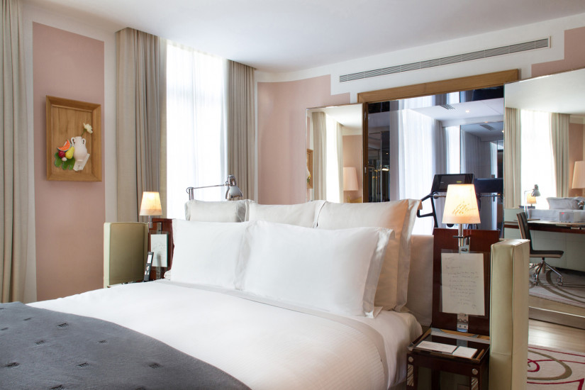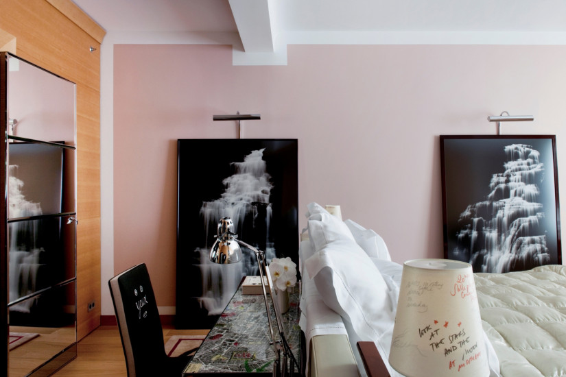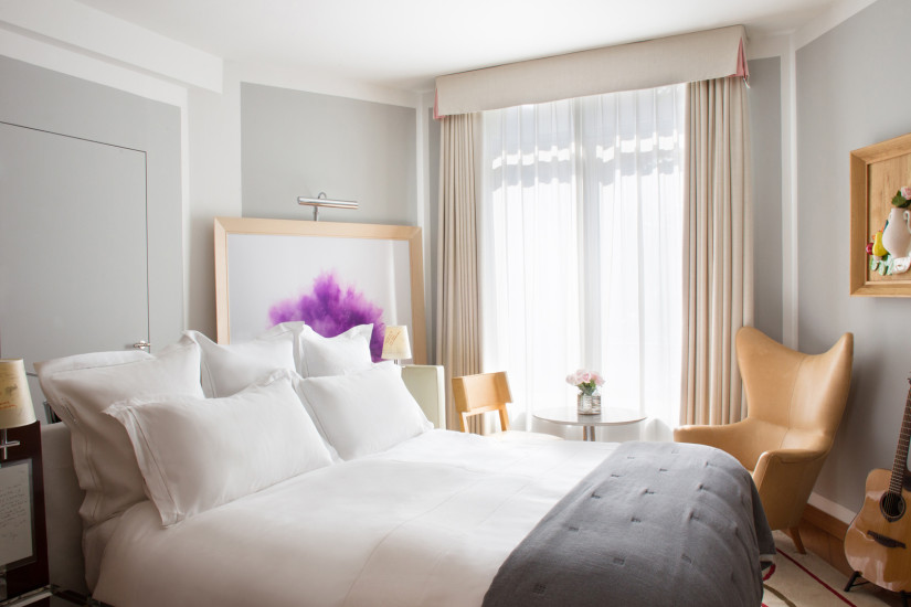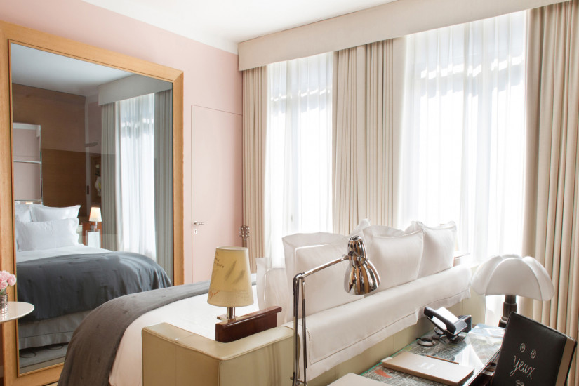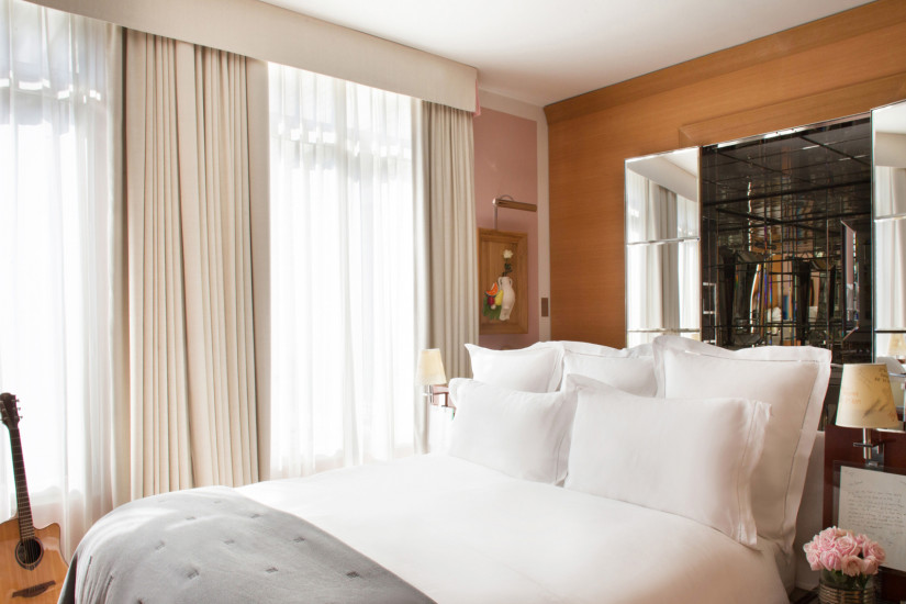 - В отеле 149 номеров различных категорий, включая 85 Rooms, 61 Suites и 3 Apartments. Интерьеры номеров, выполненные по проекту знаменитого Филиппа Старка, сочетают изысканность французской классики, навеянной стилем 1940-50 годов, и ультрасовременный дизайн: отделка из благородных материалов, спокойные пастельные тона, элегантная дизайнерская мебель, большие зеркала, утонченные художественные произведения и оригинальные элементы, привносящие уют и творческую атмосферу — профессионально настроенные акустические гитары, книги по искусству, а также коллекция фоторабот современных авторов. Просторные ванные комнаты украшены зеркалами, декорированы в стиле hi tech и располагают уютными гардеробными. Из номеров открываются чудесные виды на улицы Парижа и очаровательный внутренний двор и сад.