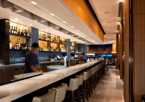 В элегантном баре Café Gray с 14-метровой стойкой можно отдохнуть за бокалом вина или коктейлем, любуясь панорамным видом на город и полуостров Коулун.