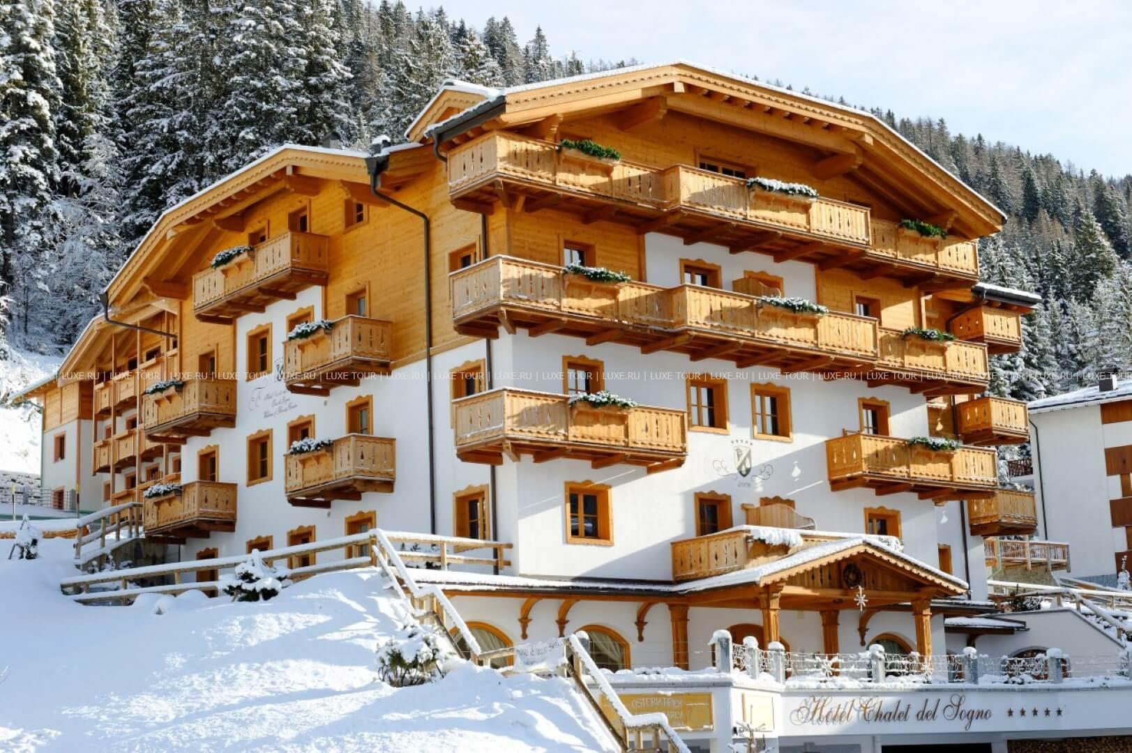 В уединенном уголке, недалеко от центра курорта, в нескольких шагах от густого леса, горнолыжного склона и канатной дороги расположился Chalet Del Sogno Мадонна ди Кампильо. Отель, построенный в 2006 году, не только идеально вписывается в изумительную природу Доломитовых Альп, но и представляет уникальную концепцию биоархитектуры – в его строительстве и отделке использовались только натуральные природные материалы: местный камень, известь, шерсть, а также разные породы дерева, придающие интерьерам уютное тепло и тонкий аромат. Chalet Del Sogno Мадонна ди Кампильо, предлагает своим гостям удивительно изысканную и гостеприимную атмосферу, созданную владельцами отеля - Доменико и Мириам Скьявон.