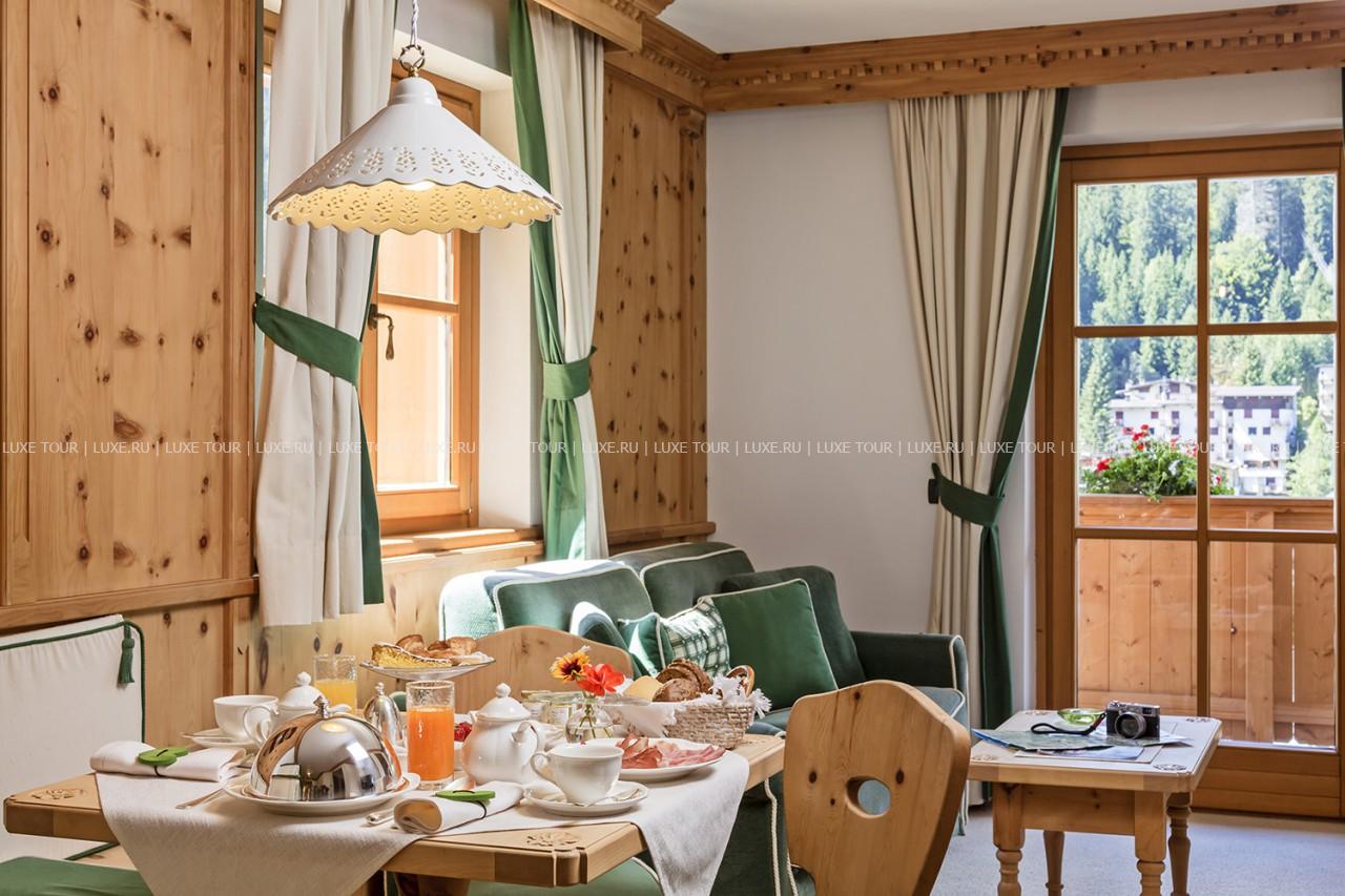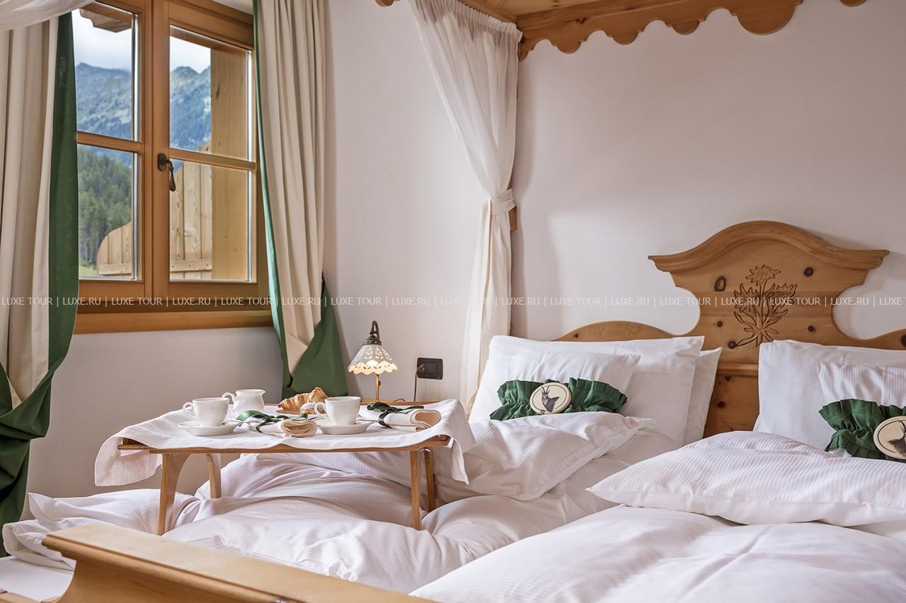 Великолепные номера – все категорий Junior Suite и Suite – восхищают утонченным вкусом, индивидуальными интерьерами и первоклассным комфортом. Прекрасно оборудованный СПА центр Oasi di Sogno – действительно является оазисом мечты и дарит возможность насладиться эксклюзивным услугами и процедурами. Элегантный ресторан предлагает традиционные местные блюда, фирменные деликатесы и лучшие вина Трентино.