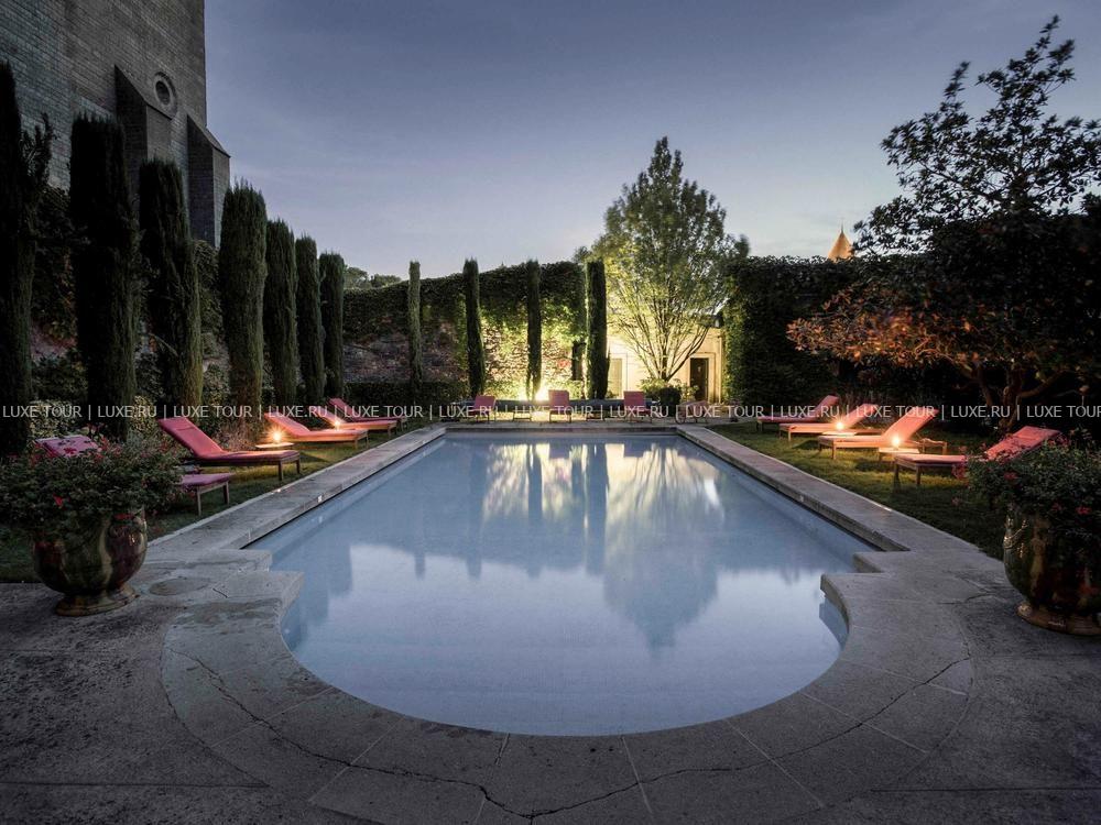 Летний ресторан Le Jardin de l'Eveque открыт с 1 июня по 30 сентября и приглашает гостей насладиться блюдами в полутени деревьев.