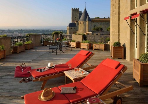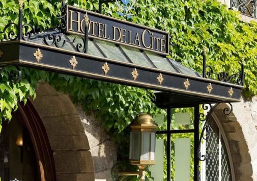 Отель расположен в зелени великолепных садов на Place de l'Eglise в самом центре средневекового города Каркасона между двумя выдающимися памятниками истории: Графским Замком, построенным в романском стиле, и готической базиликой Св. Назария. Благодаря своим каменным стенам, деревянной отделке и узорчатым витражам Hotel de la Cite превосходно гармонирует с окружающими постройками и башнями Цитадели, постепенно срастаясь со славной историей старинного города. Построенное в начале XX века на месте дворца епископа, и недавно отреставрированное, здание предстает во всем своем блеске и великолепии. Интерьер каждого номера выполнен в аристократическом изысканном стиле, подчеркивающем уникальность декора и меблировки: здесь и отделка, выполненная с помощью резьбы по дереву, витиеватые гобелены, узорчатая геральдика окон. В распоряжении гостей отеля центр красоты, 4 ресторана, бар, винный погреб, открытый подогреваемый бассейн, а в 5 минутах езды — гольф-клуб с полем на 18 лунок. Также гостям доступны каноэ, кайак, верховая езда и множество других развлечений: организуются различные развлекательные мероприятия (средневековые пиры с менестрелями и жонглерами, рыцарские турниры, речные поездки по Каналу дю Миди). И по сей день отель культивирует глубокие традиции средневекового прошлого.
