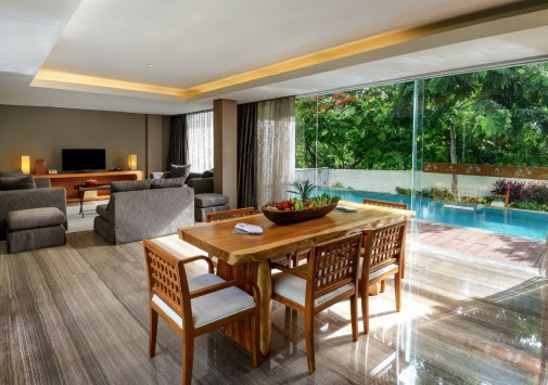Великолепные номера – все категории Suite с панорамными балконами, на которых установлены ванны. Шикарные виллы с собственными бассейнами, утопающие в буйной зелени тропического сада. Фешенебельные двухэтажные пентхаузы с бассейнами и захватывающим видом на океан. СПА центр и огромный бассейн на краю скалы, широчайшие возможности для спорта, активного и познавательного отдыха. Рестораны и бары с разнообразием деликатесов, изысканных напитков и потрясающими видами на океан, и многое – многое другое.